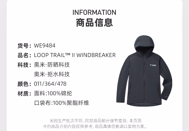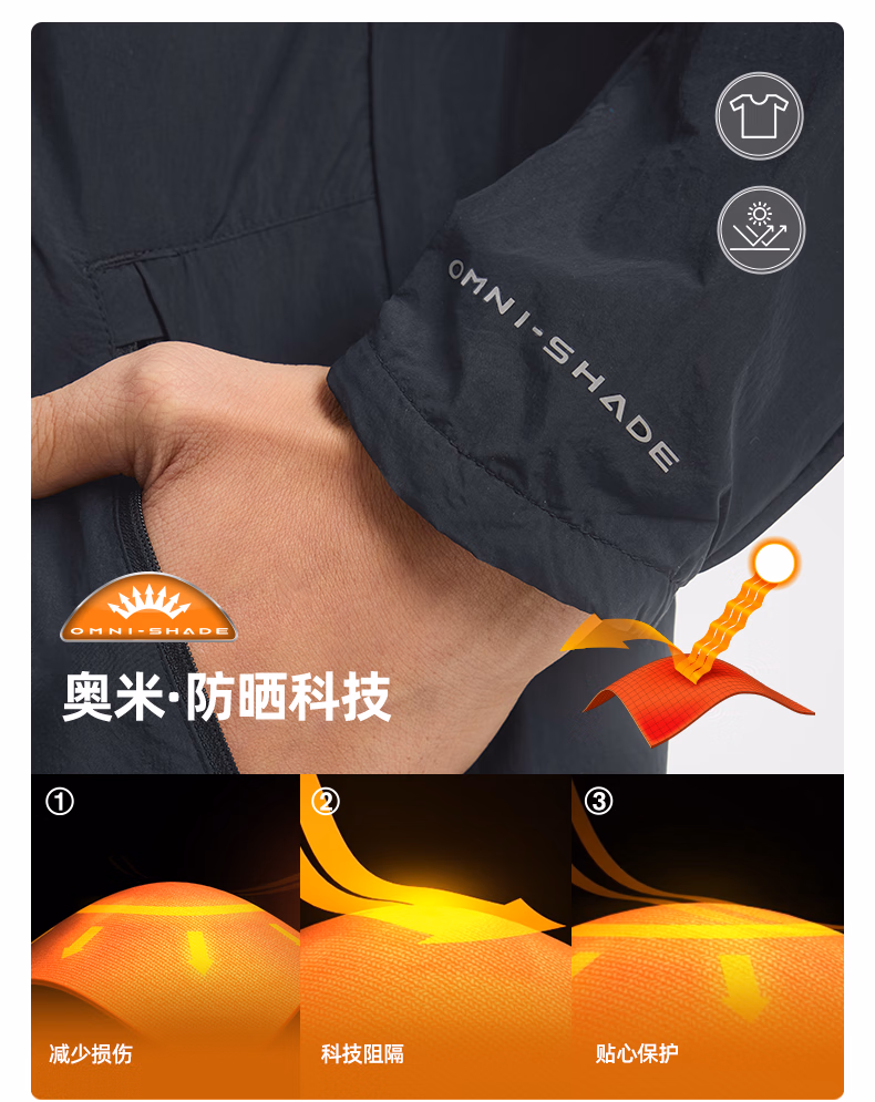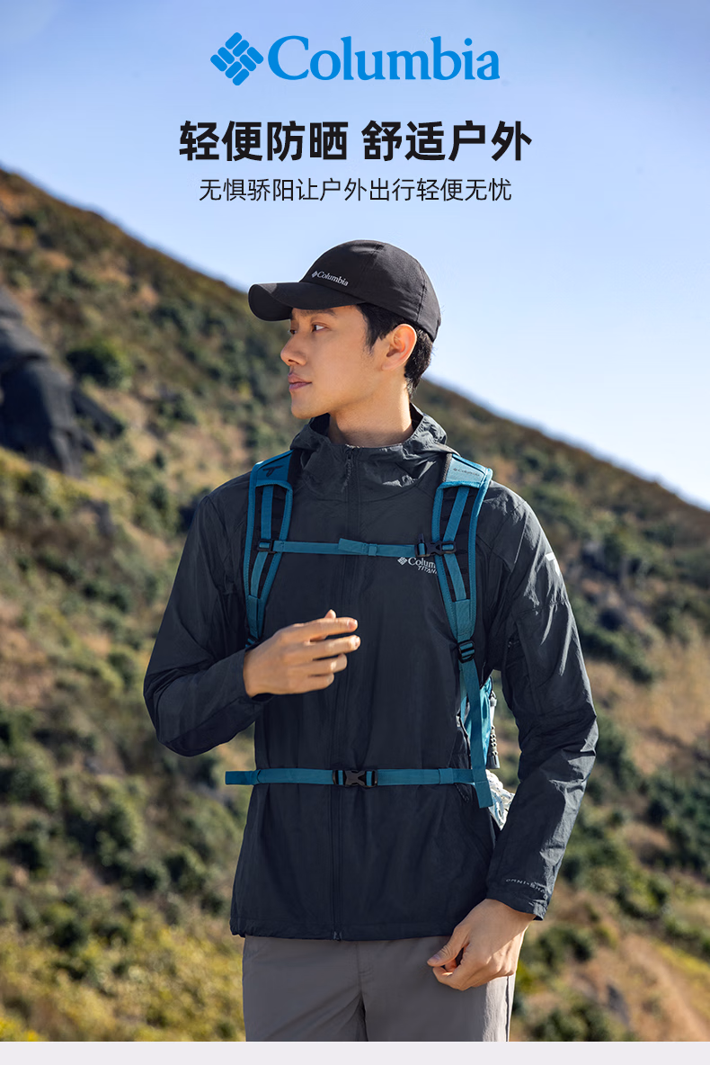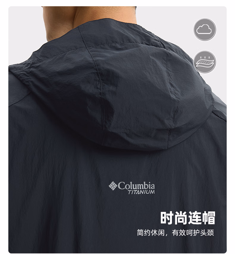 哥伦比亚男式净色连帽防晒拒水外套WE9484