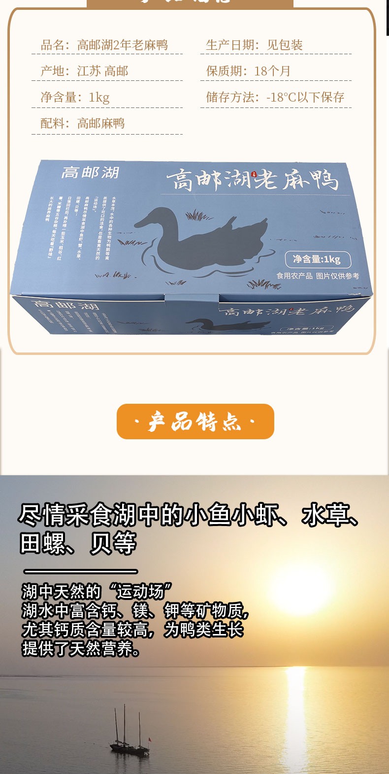 高邮湖2年生老麻鸭1kg/只*1只