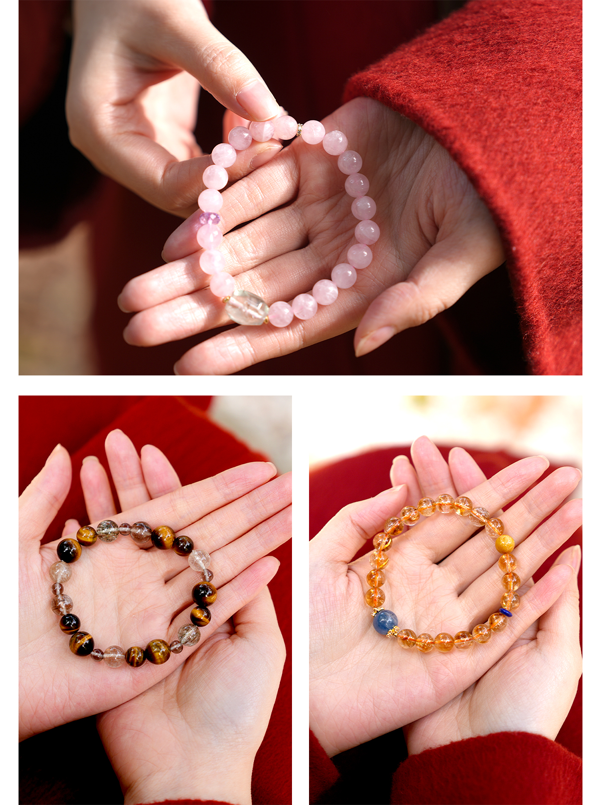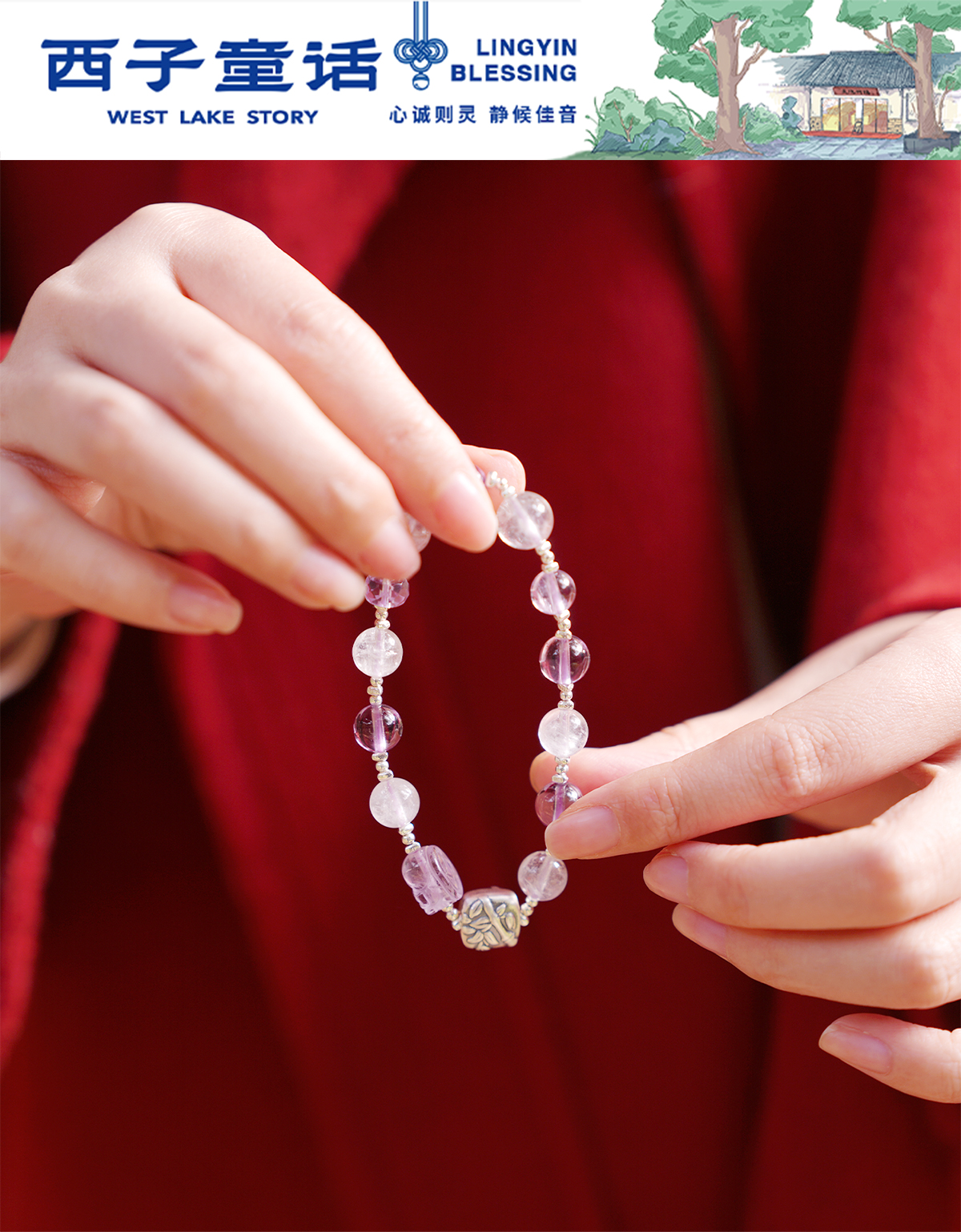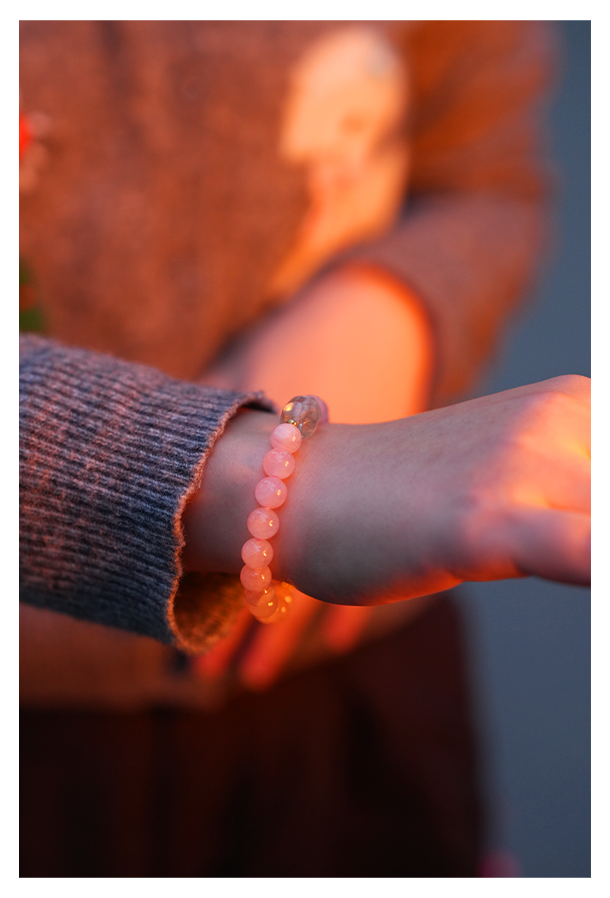 【预售3-5天】灵隐文创 桃花盈袖天然水晶手串高能量女士手链招桃花招米