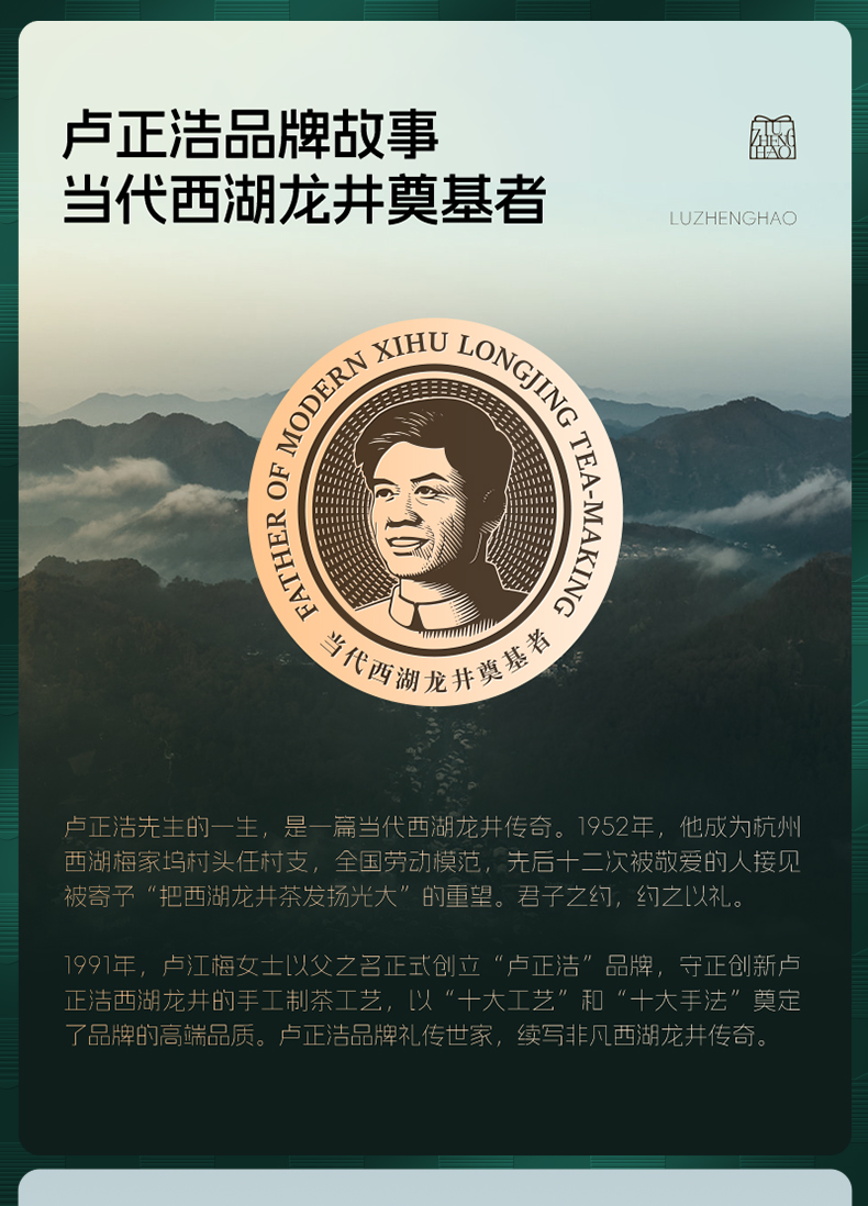 【2026年新茶上市】卢正浩明前特级头采花香战神花香龙井150克纸包绿茶茶叶 春茶