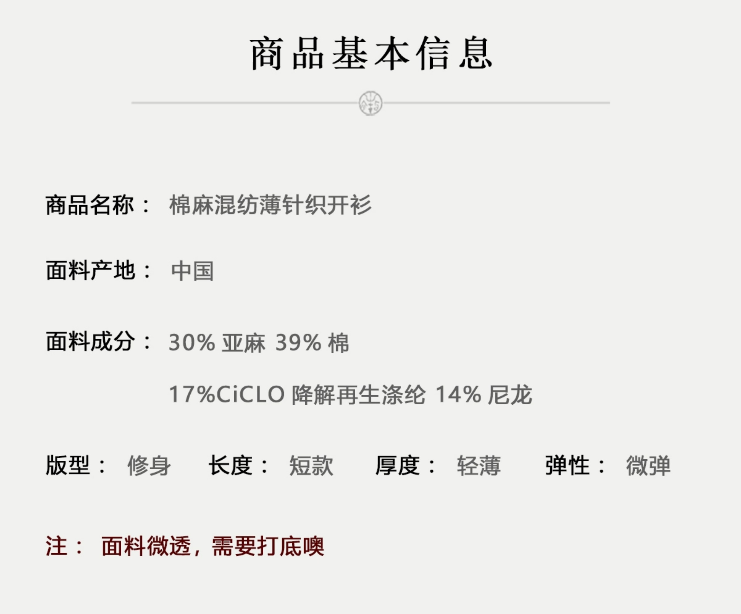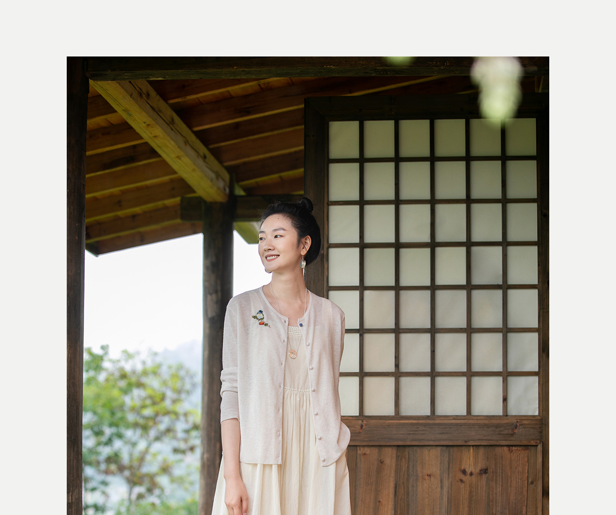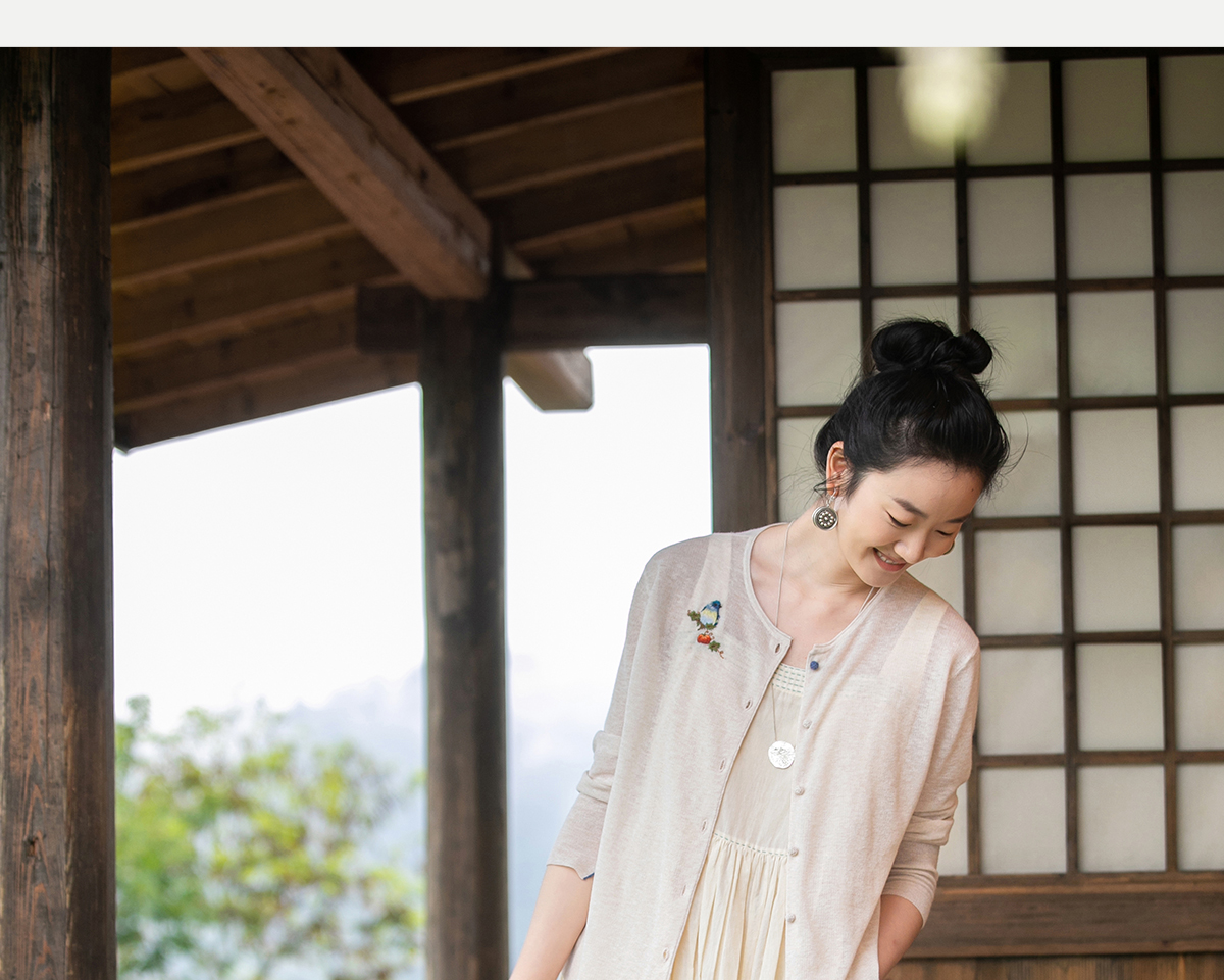 牧衣游 棉麻混纺薄针织开衫-----青枝