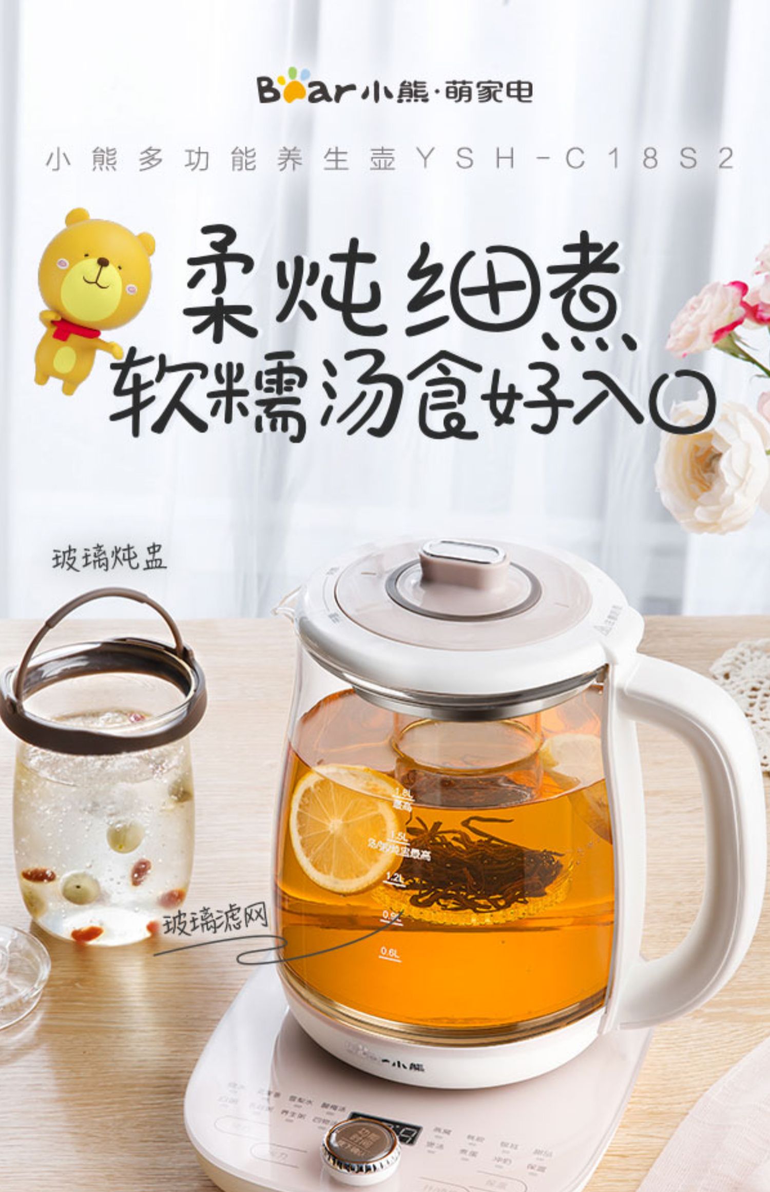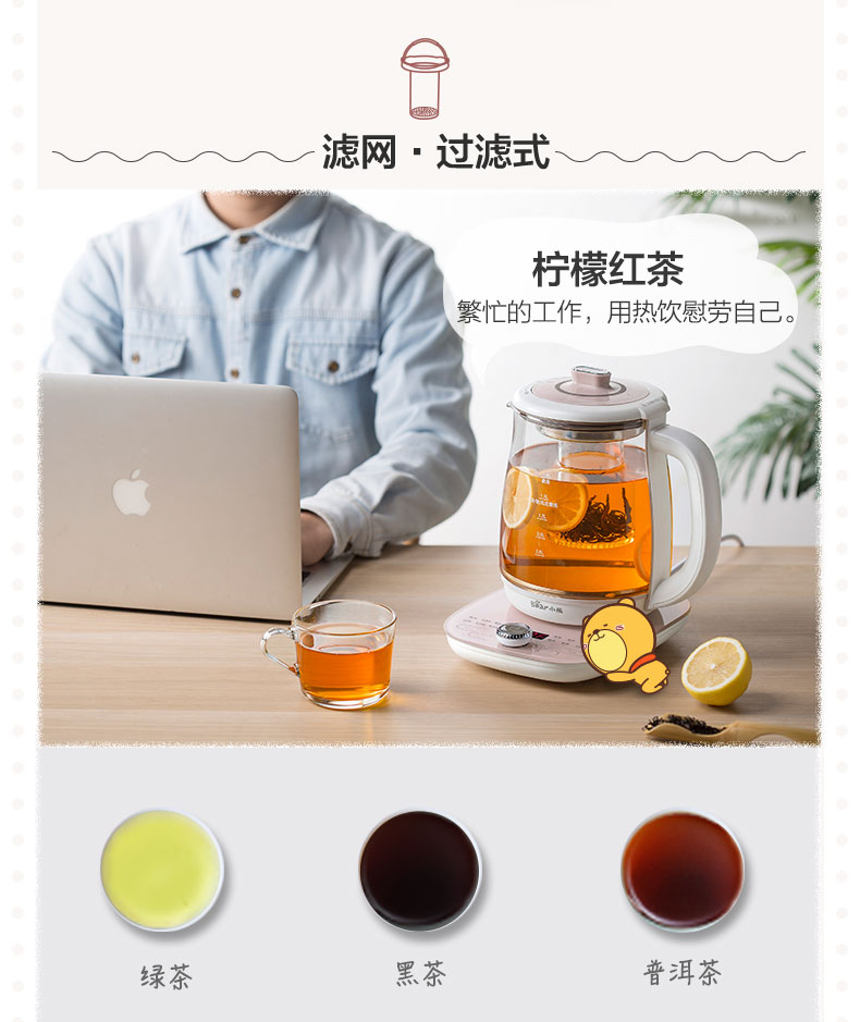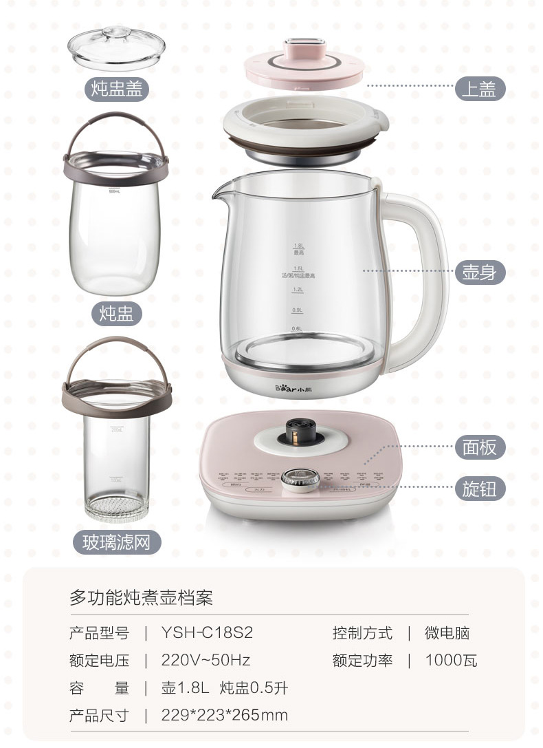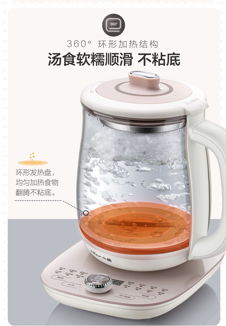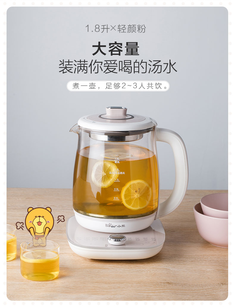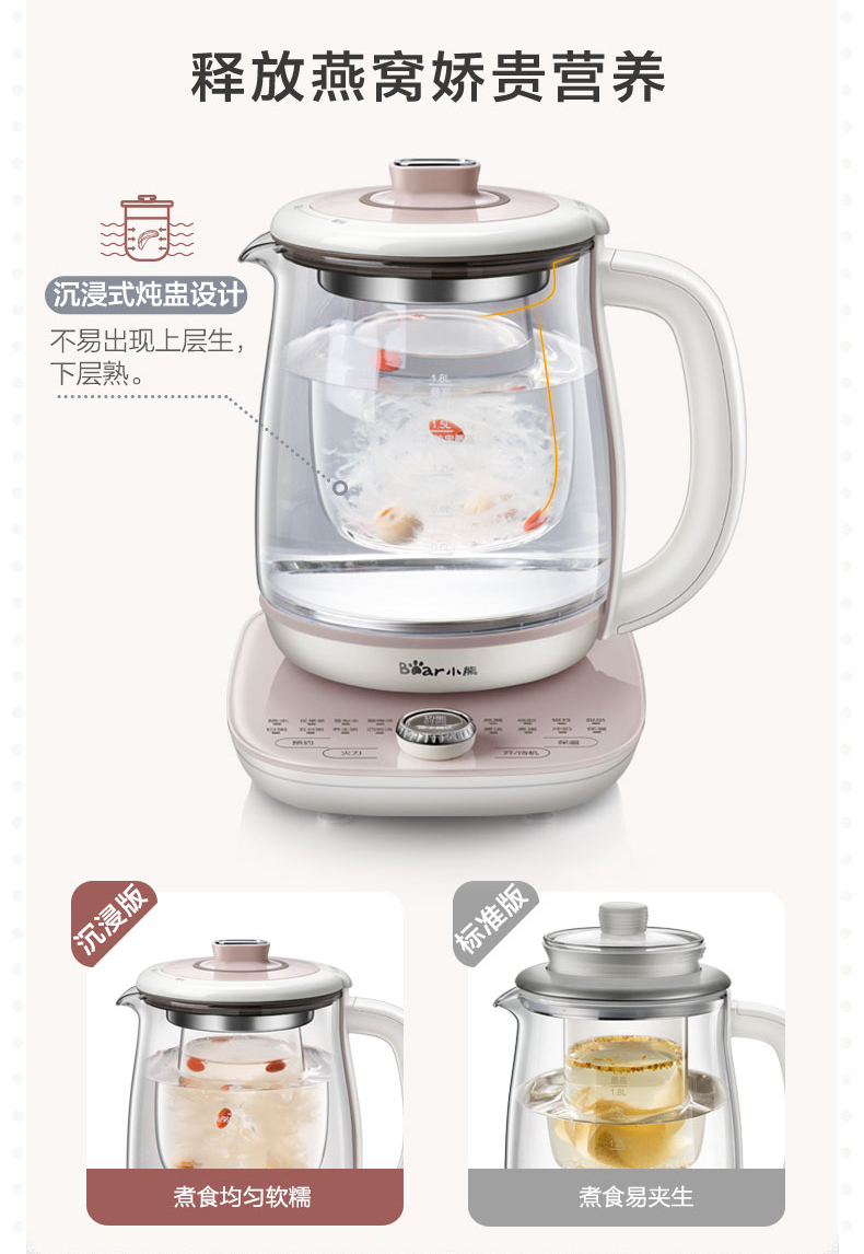小熊(Bear)养生壶大容量家用多功能办公室煮茶器花茶壶养身隔水炖燕窝盅