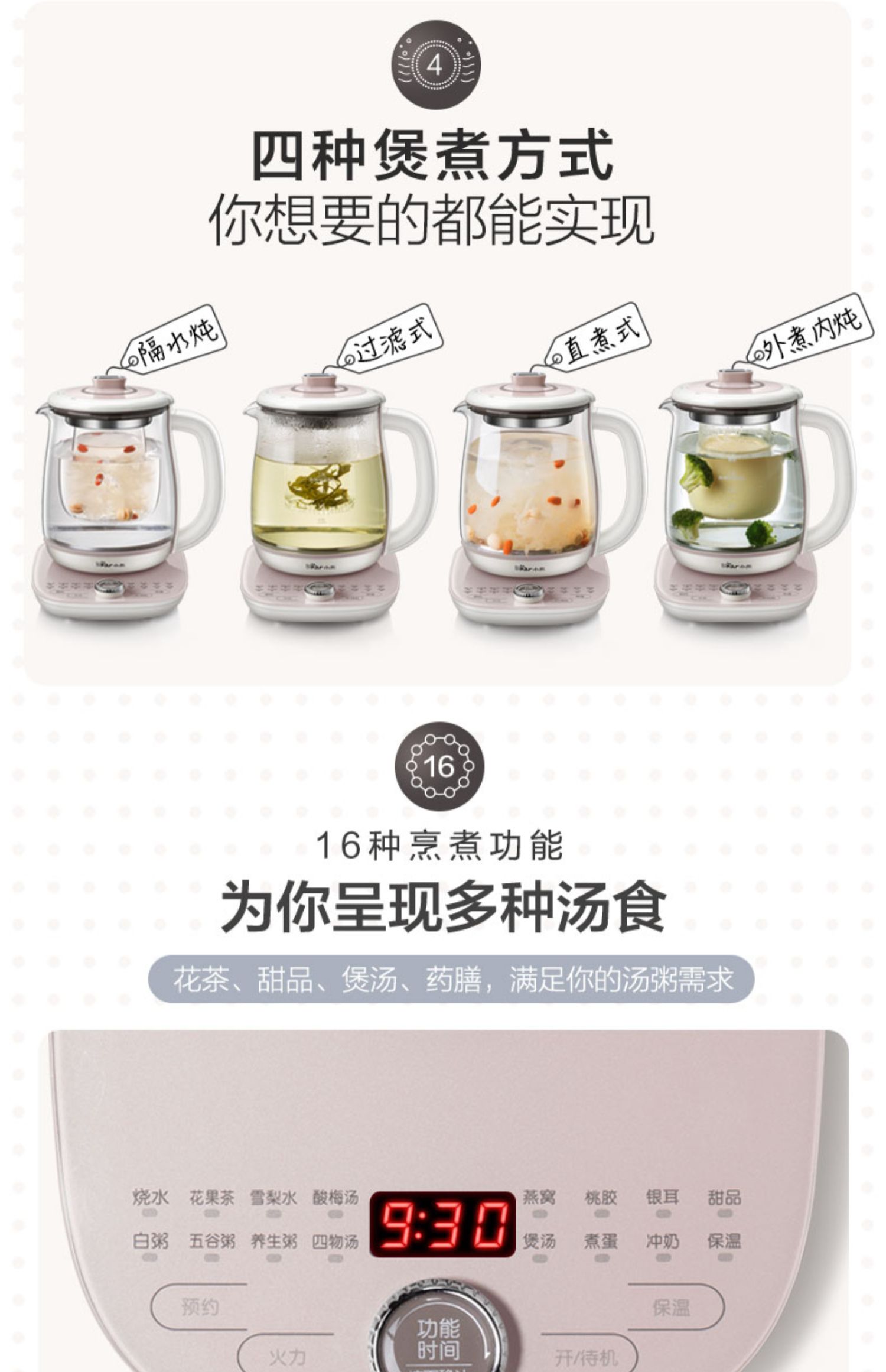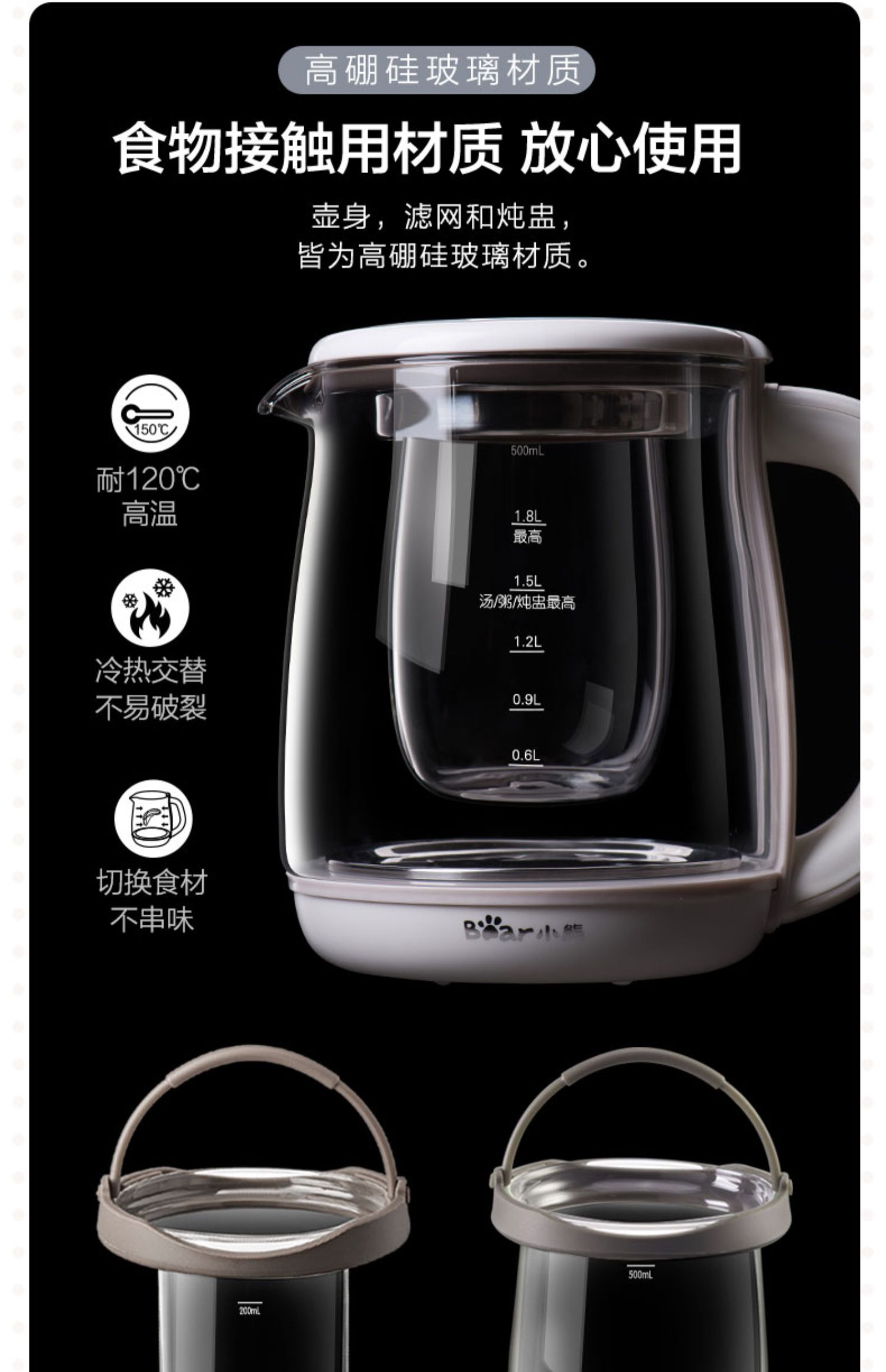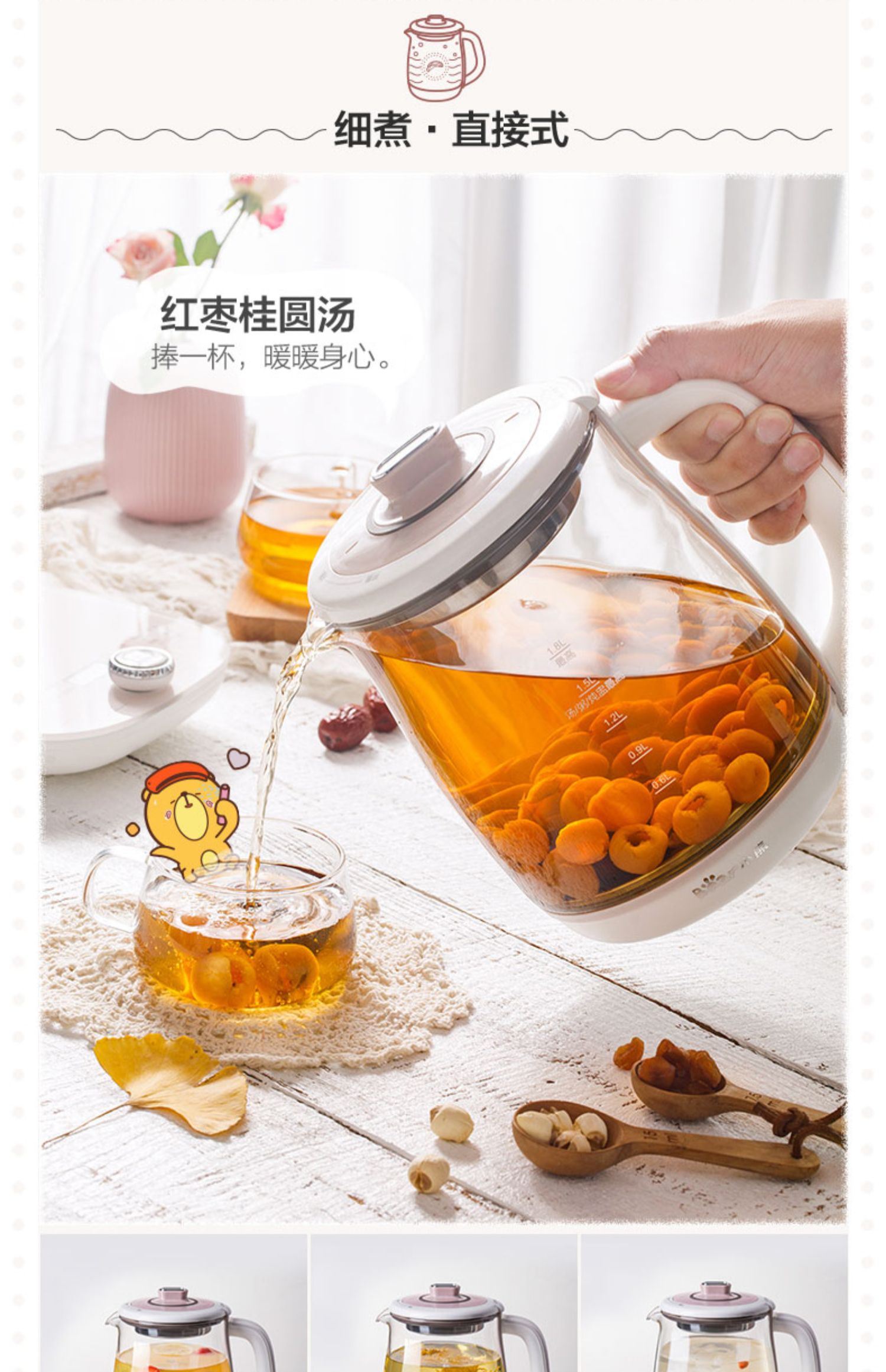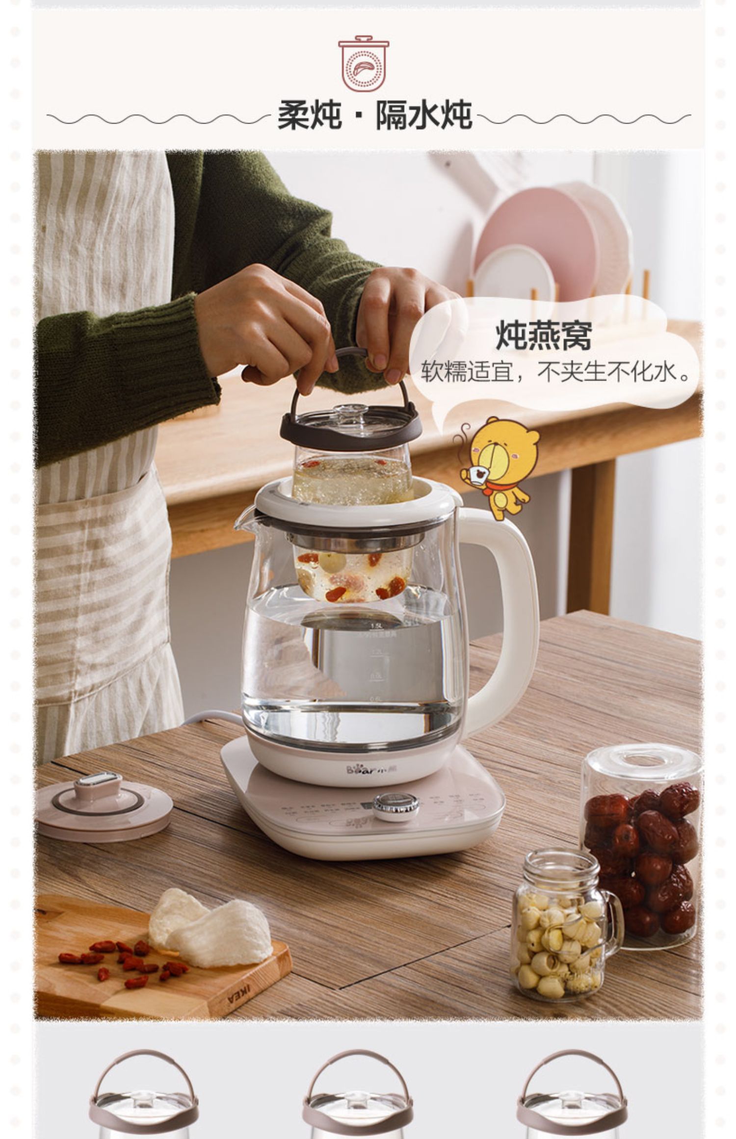 小熊(Bear)养生壶大容量家用多功能办公室煮茶器花茶壶养身隔水炖燕窝盅