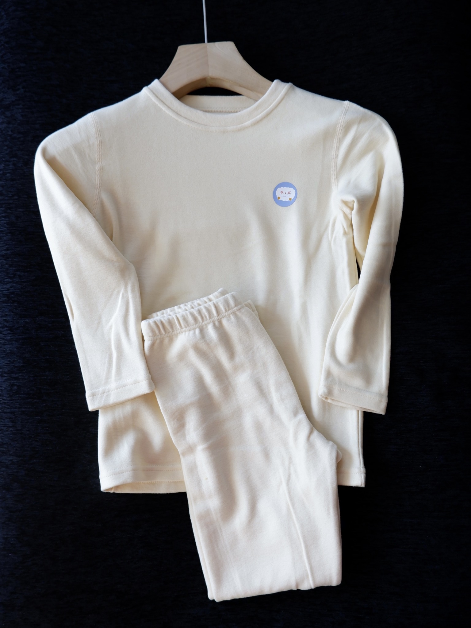 【还有很多家长执著于全棉的,其实材料的升级,主要是为了适合天气, 像这种自发热材质,更加适合,户外的儿童以及室内不动的孩子,保温,让身体快速锁住温度而存在的一种材质