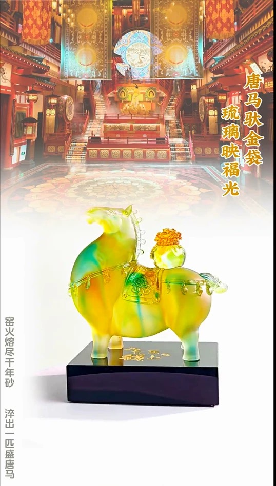 佛罗端斯马上有钱琥珀色琉璃摆件