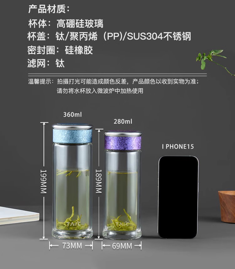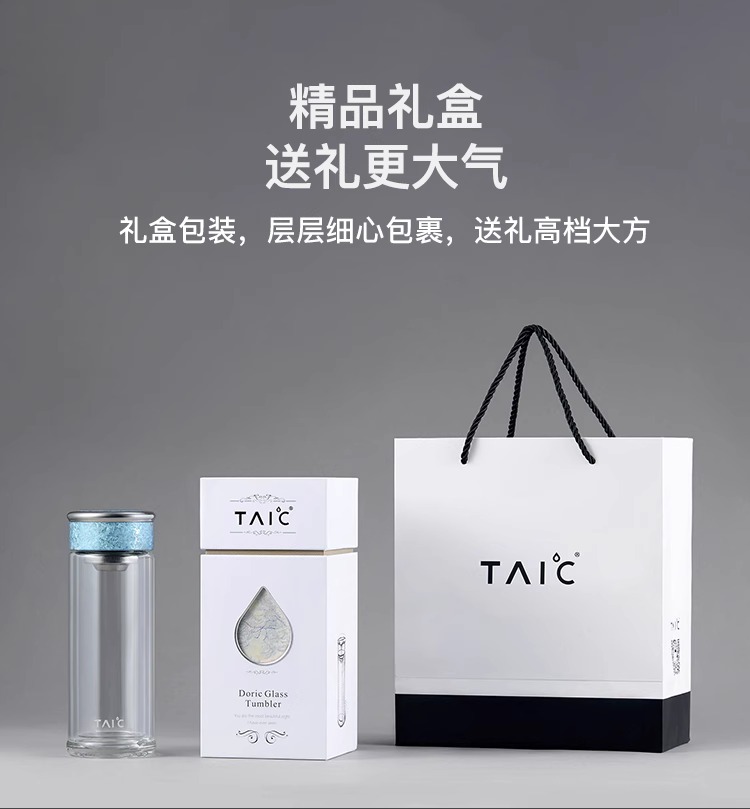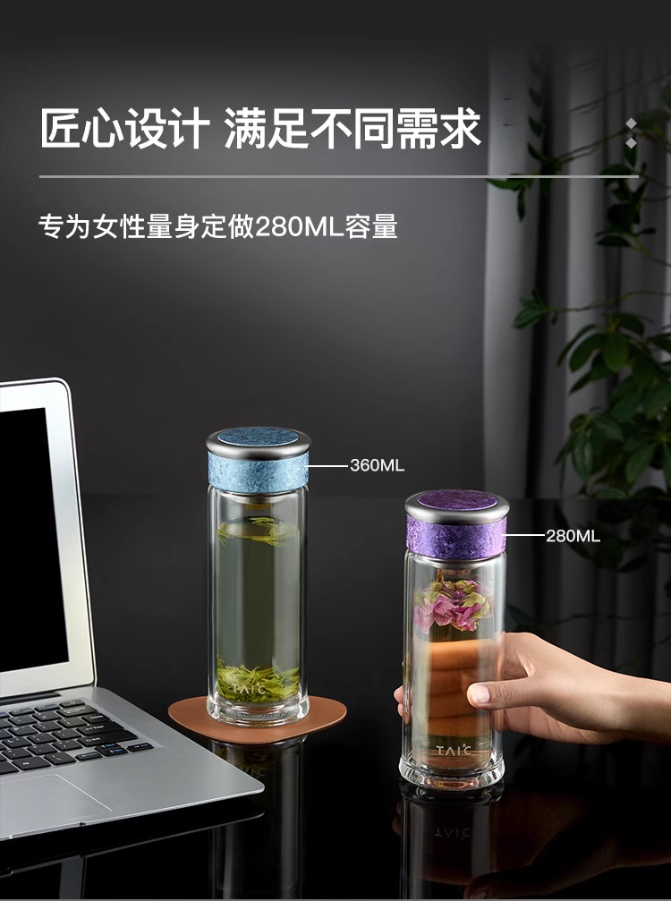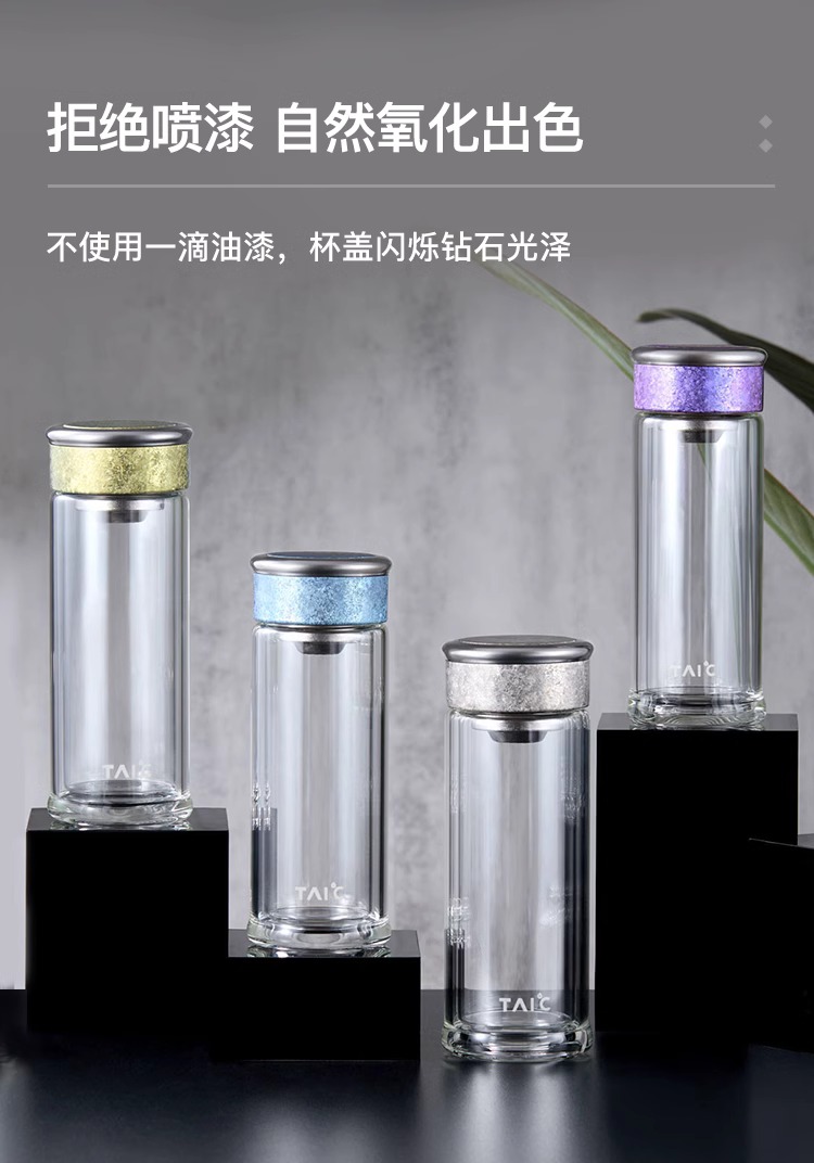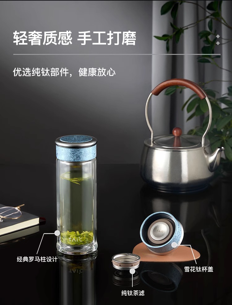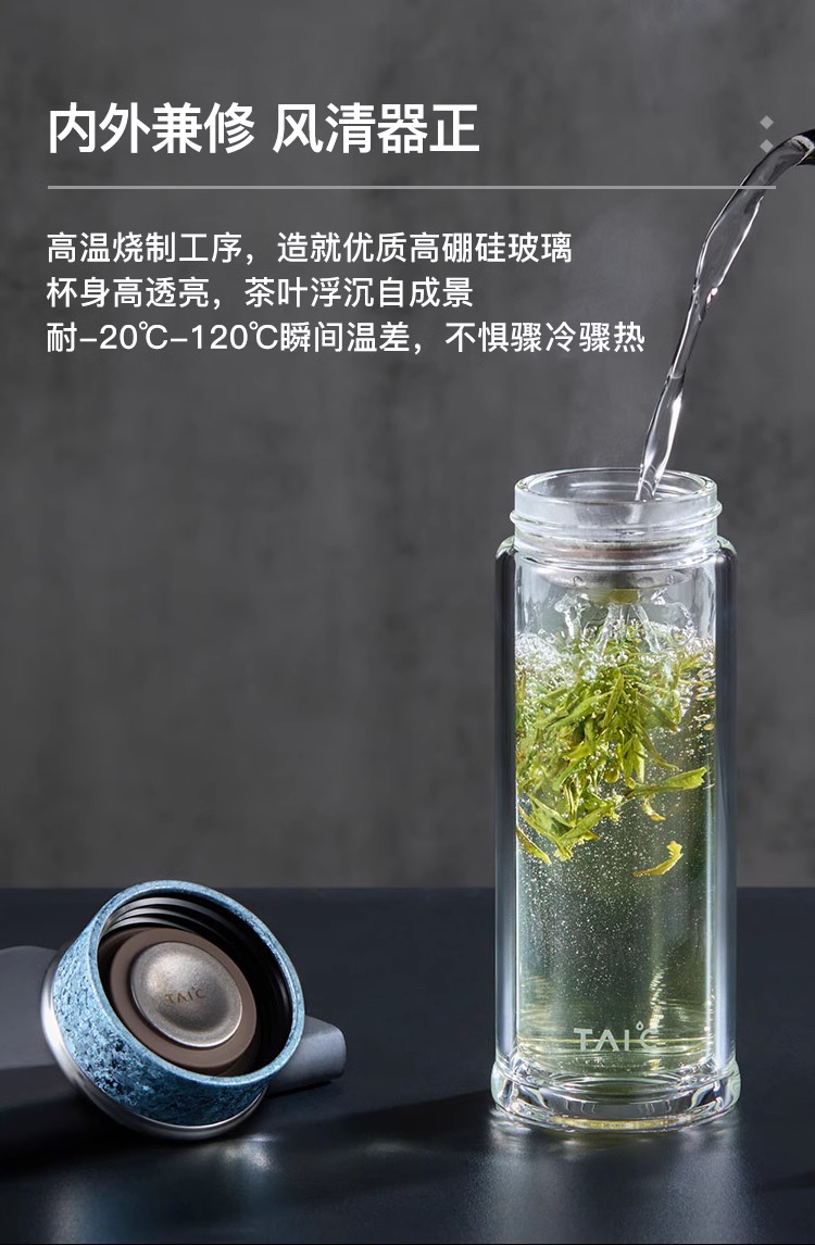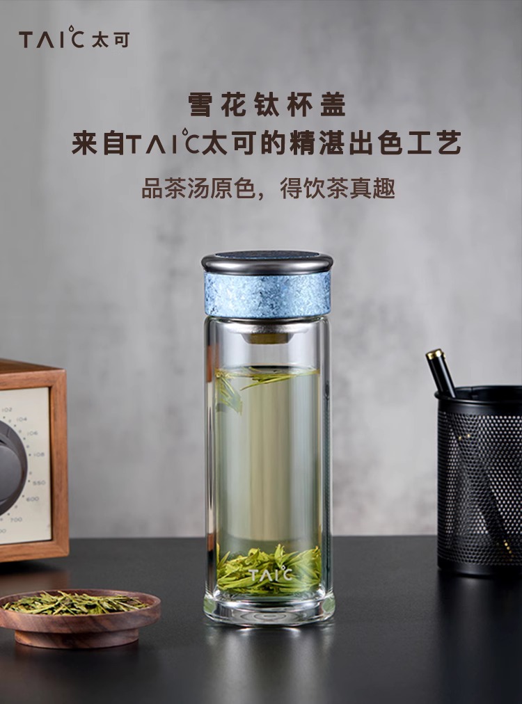 【清仓特惠5折,仅2个】TAIC太可纯钛双层高硼硅玻璃杯玻璃杯茶水分离杯360ml (瀚海蓝)