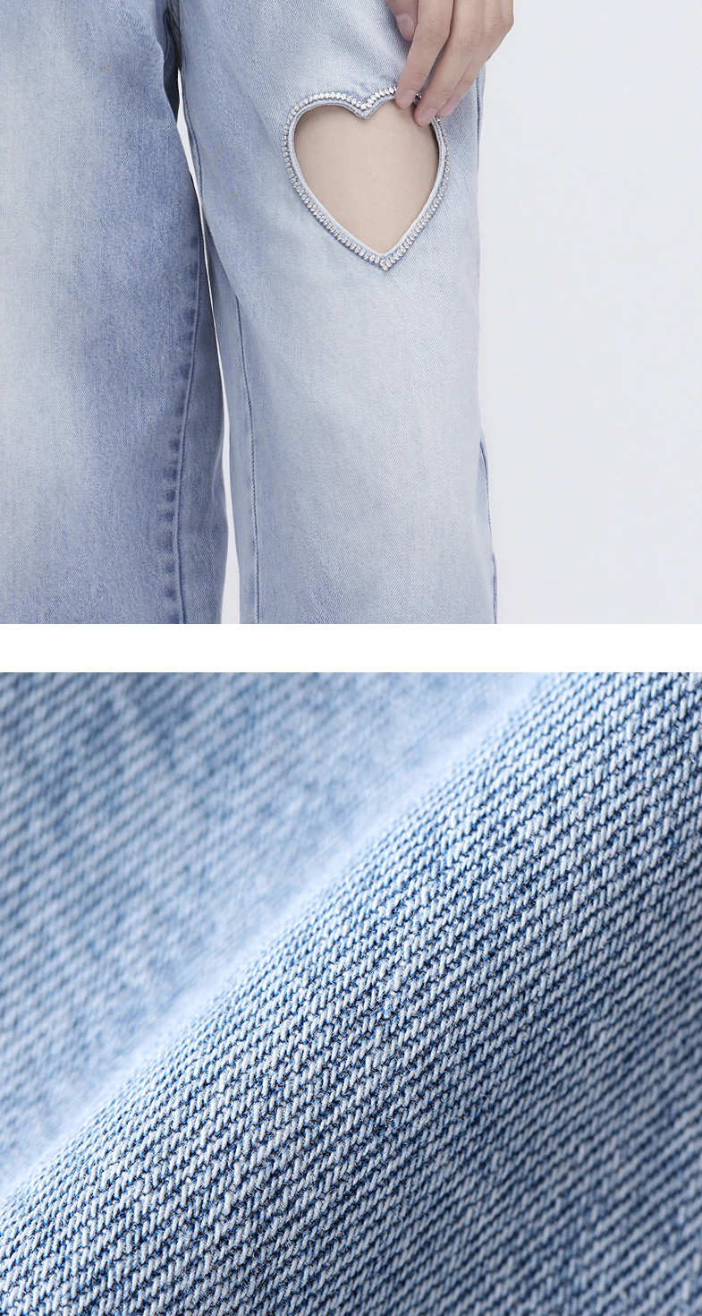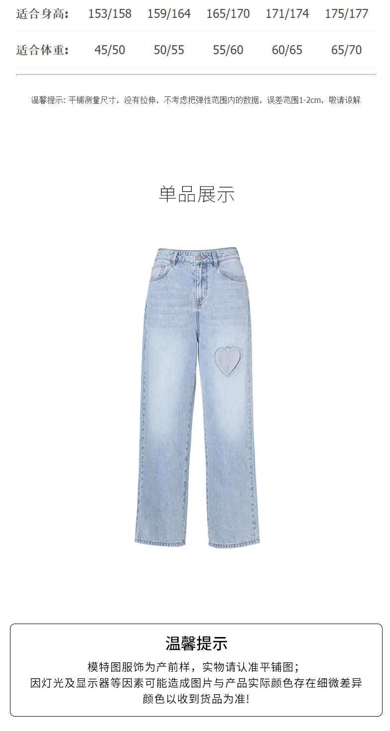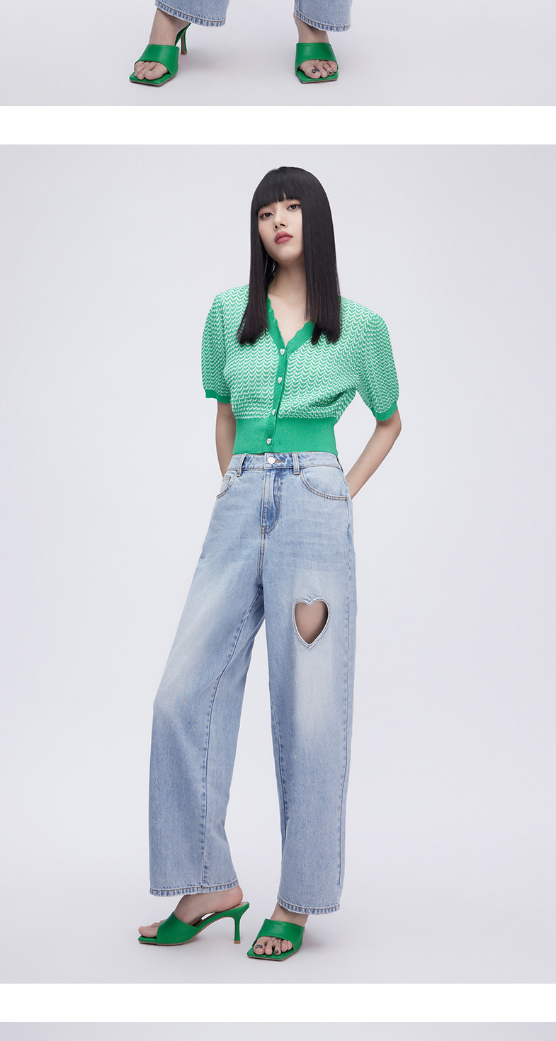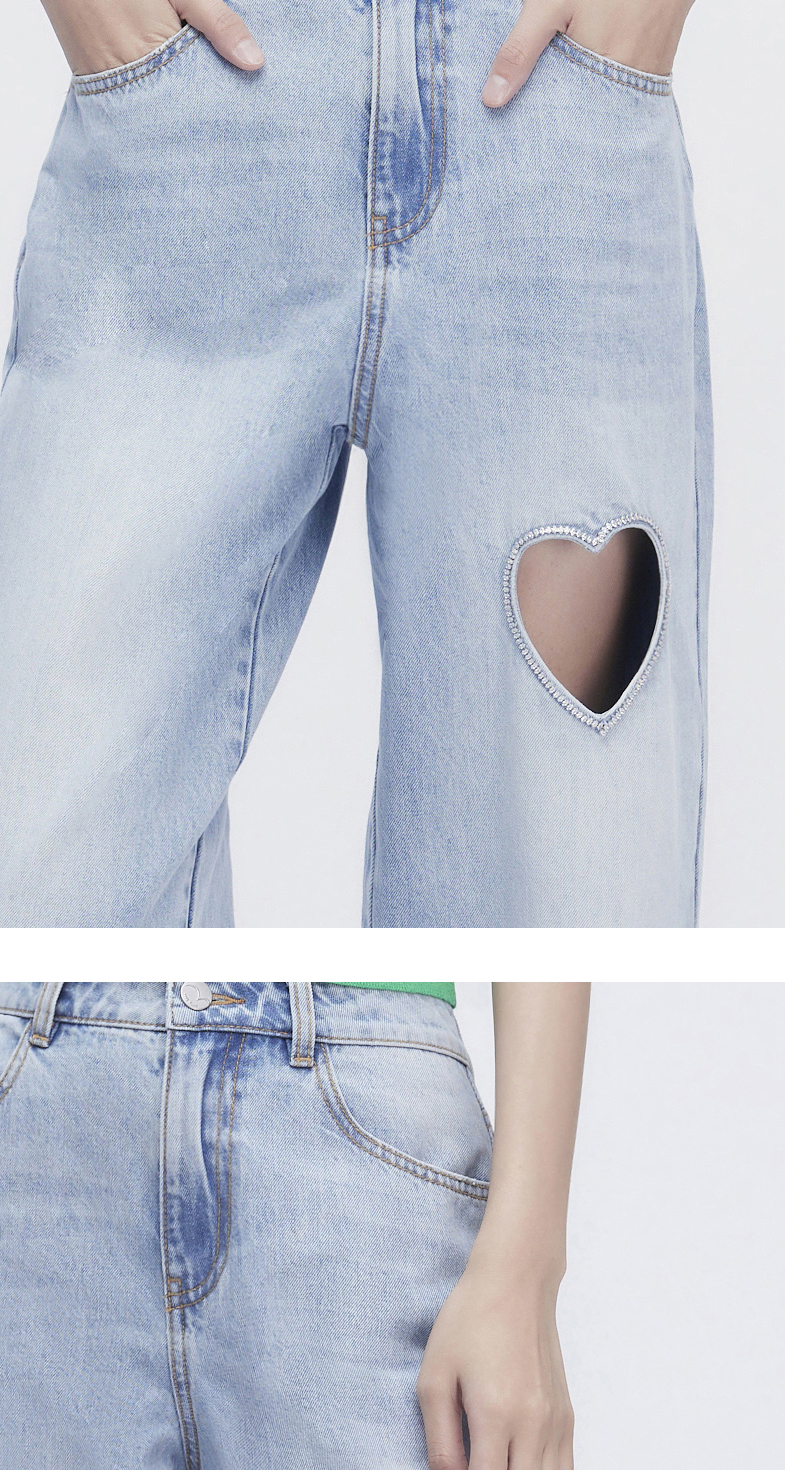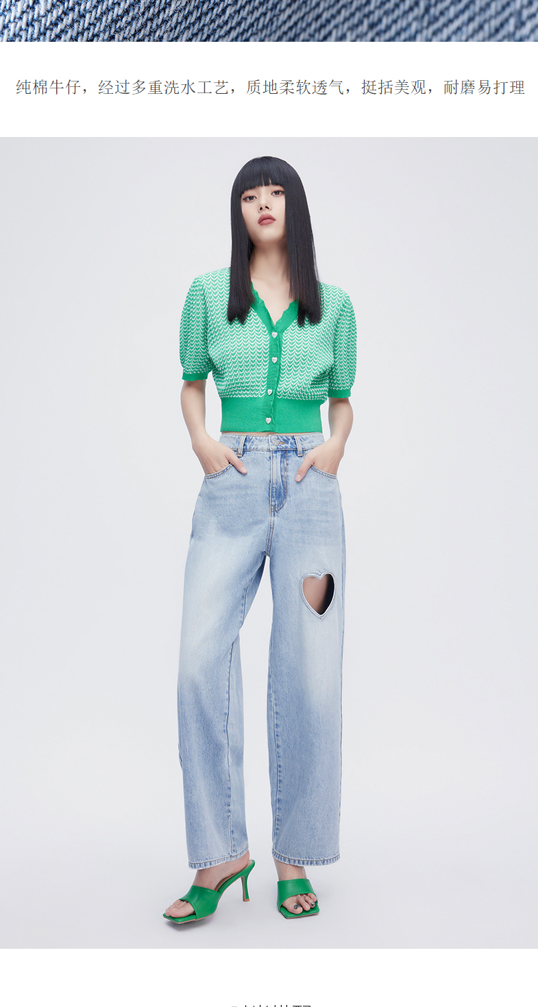 FIVE PLUS2022新款女夏装高腰直筒牛仔裤女心形挖空宽松阔腿裤长2WN2063140