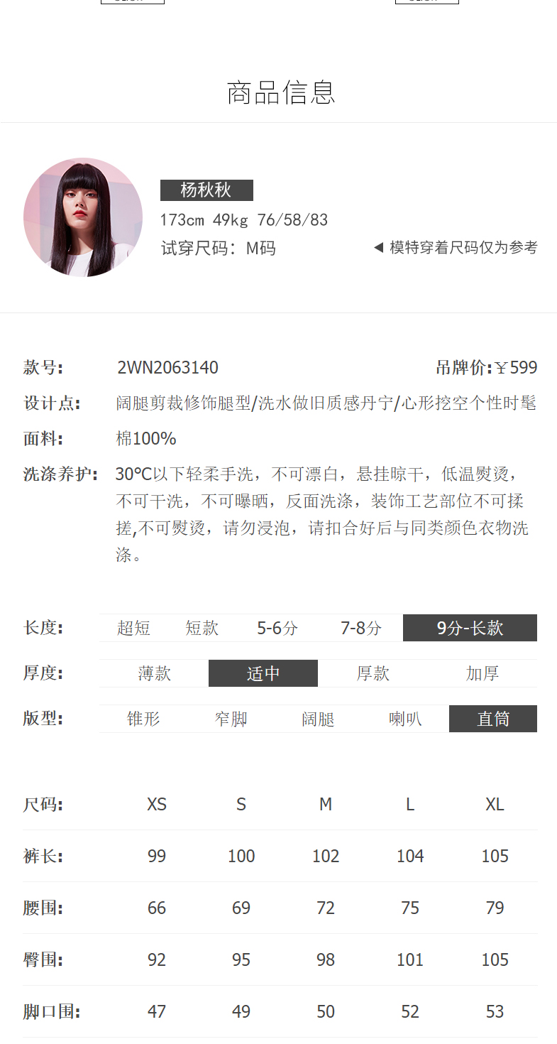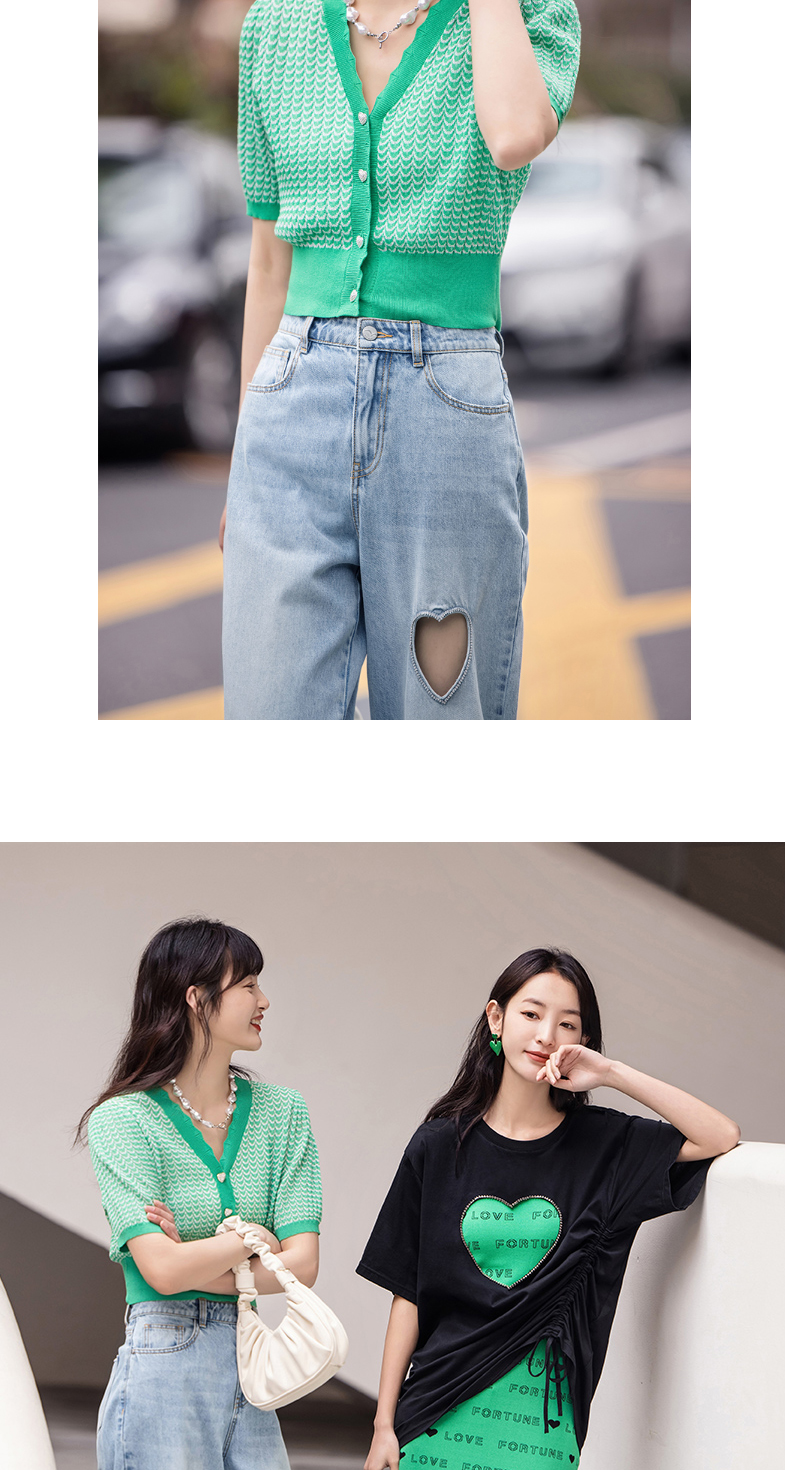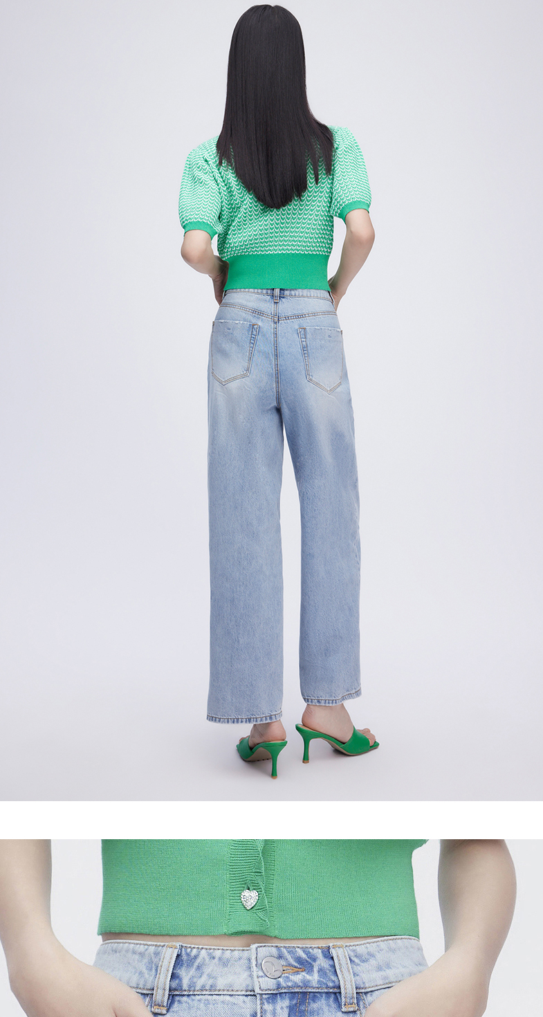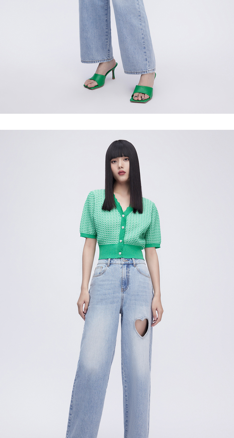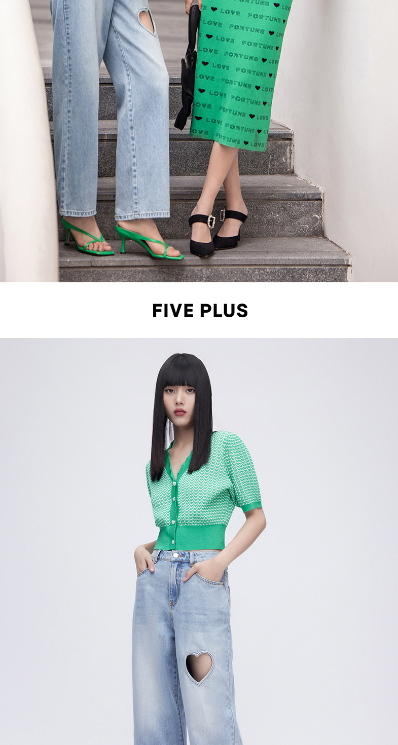 FIVE PLUS2022新款女夏装高腰直筒牛仔裤女心形挖空宽松阔腿裤长2WN2063140
