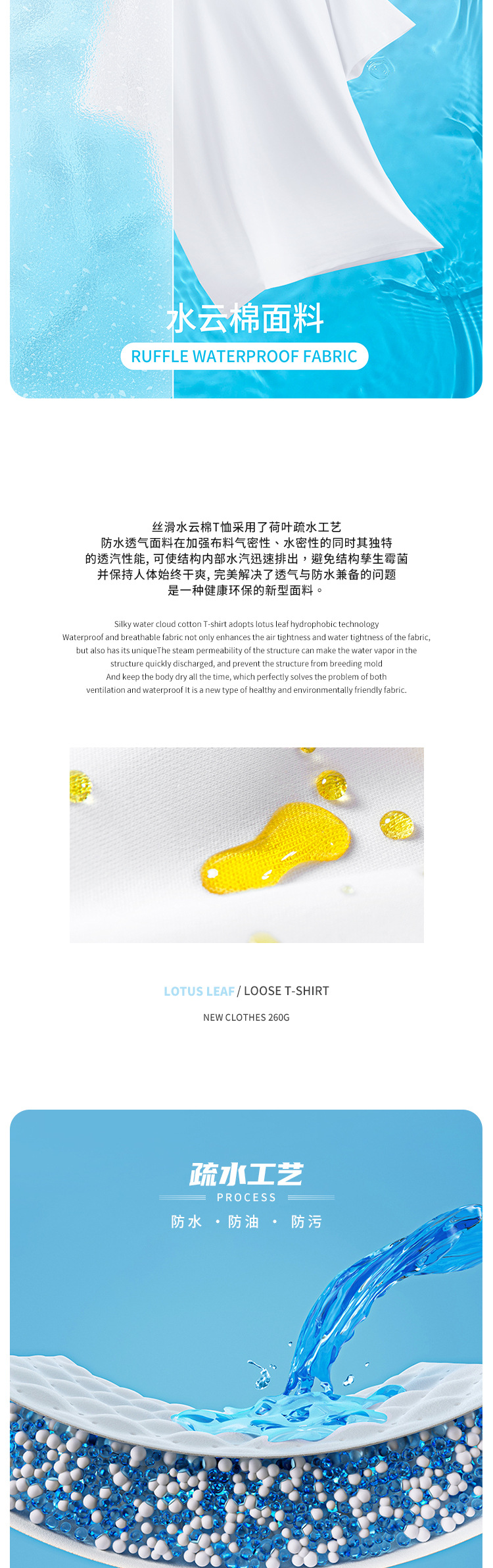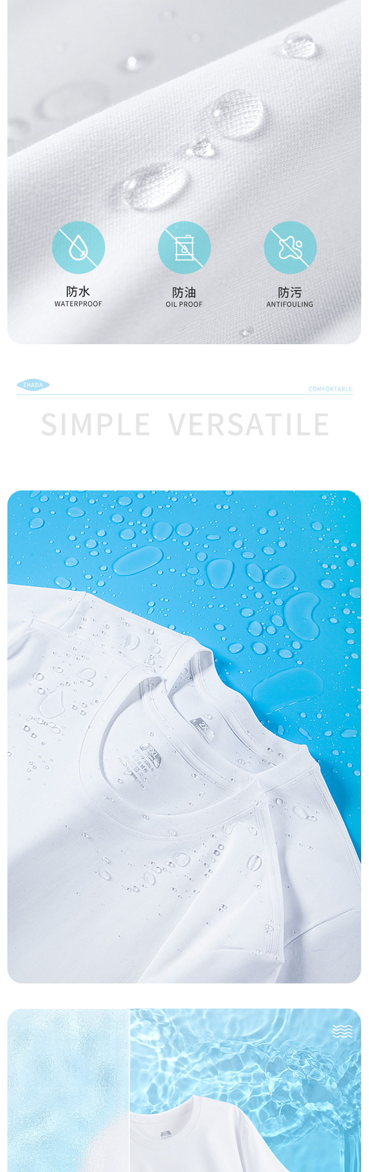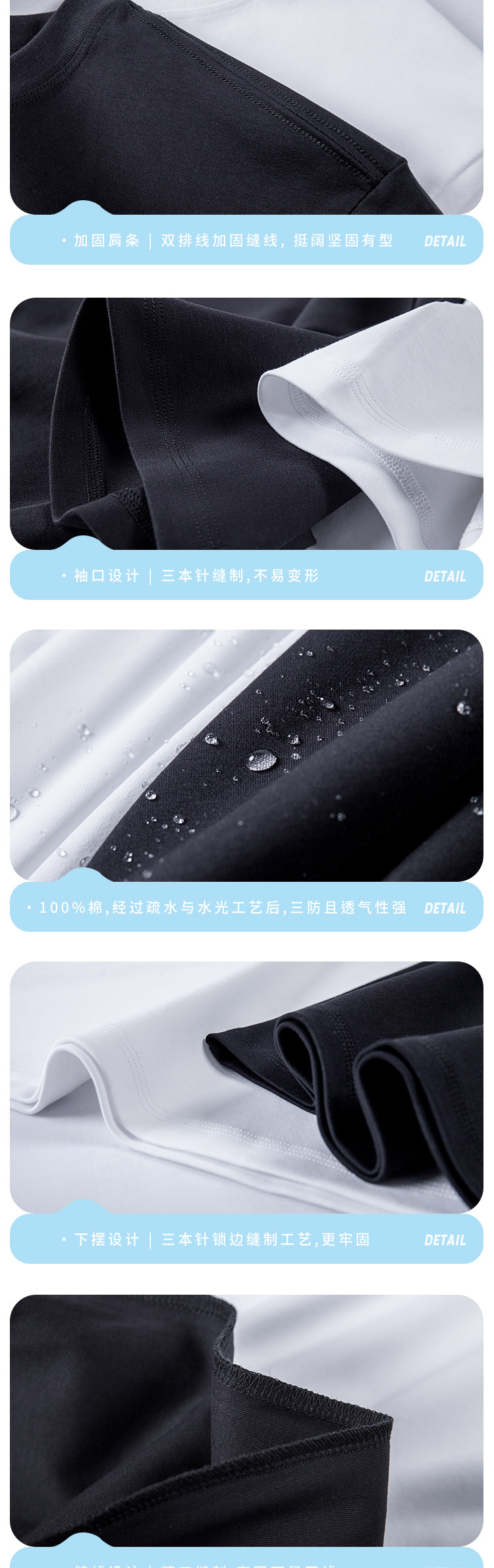 第三代水云棉防污渍男女圆领短袖t恤夏季纯棉宽松白色半袖三防T恤夏季新款