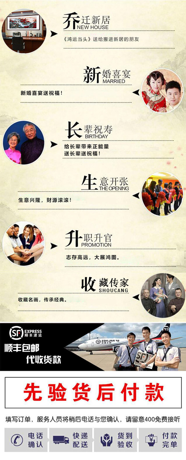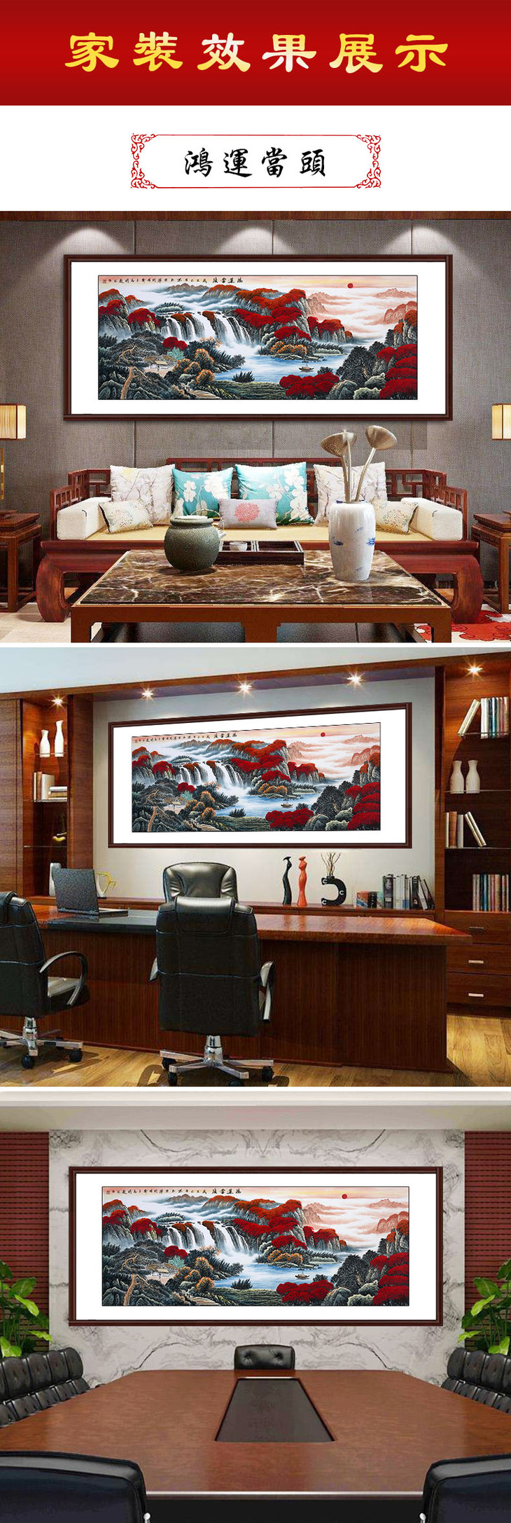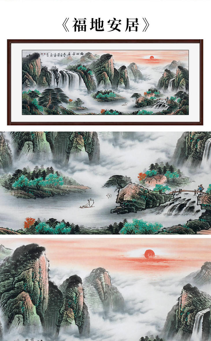 侯志明《鸿运当头》《福地安居》68*178cm*2 红绿山水横幅作品 办公室/客厅/会议室挂画