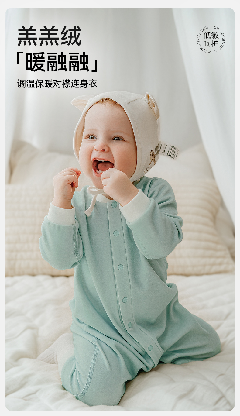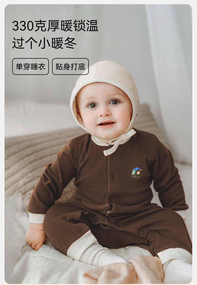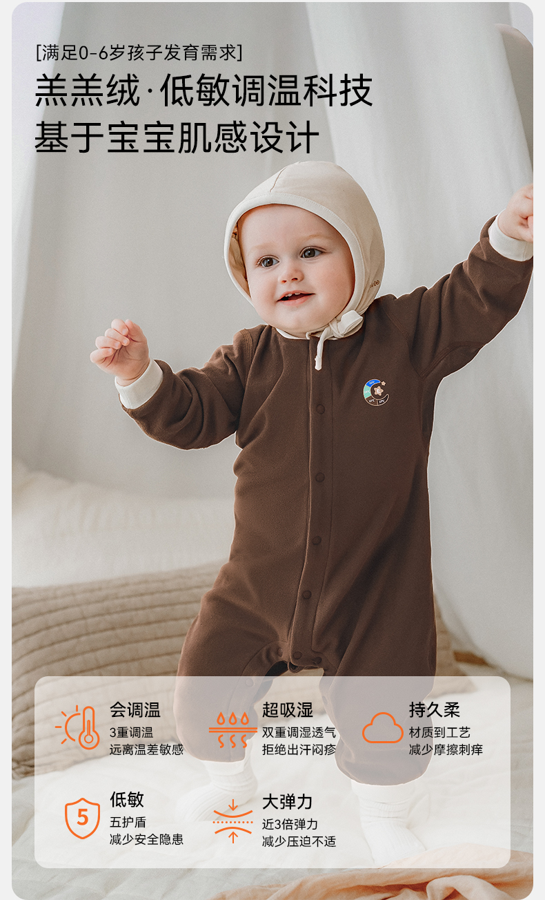 【宝宝服饰】嫚熙羊毛发热德绒婴儿连体衣新生儿宝宝爬服哈衣秋冬加厚保暖衣服