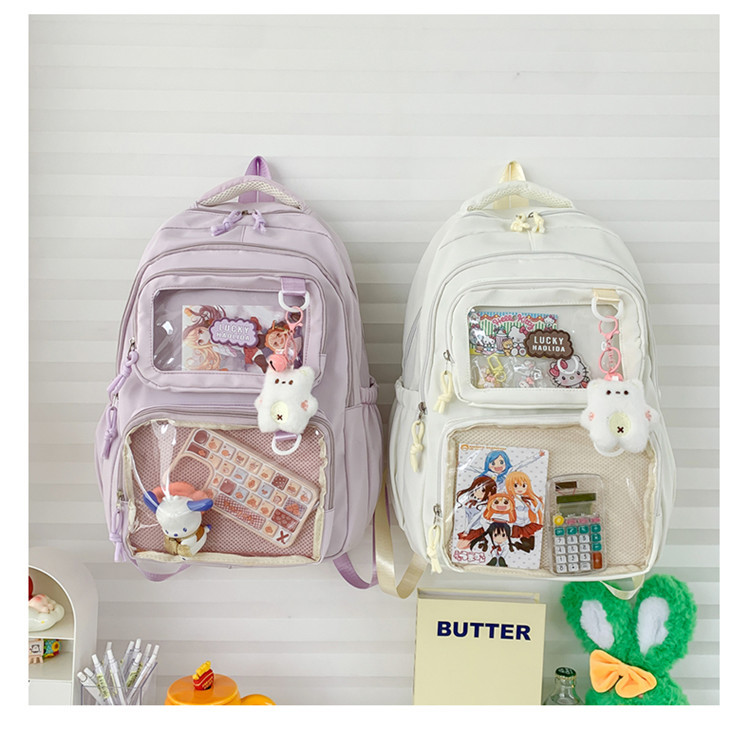 日系二次元漫展书包女学生大容量双肩包透明吧唧谷子扎板痛包娃包