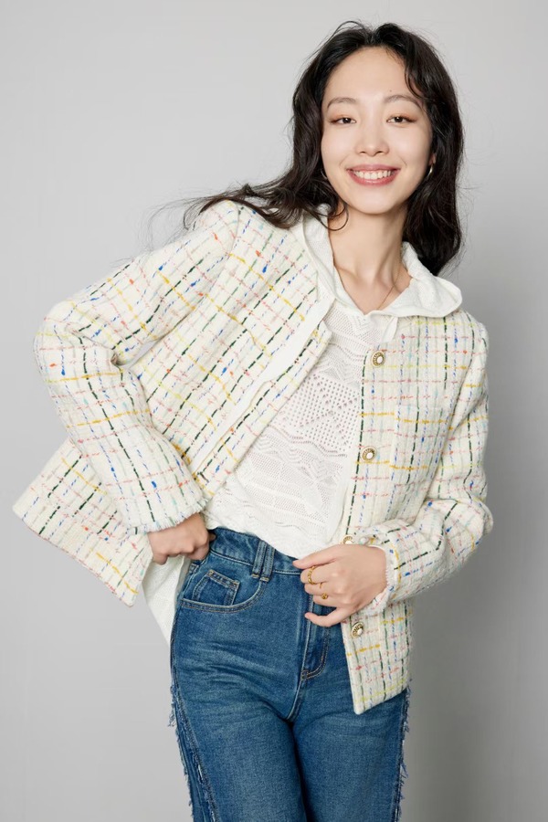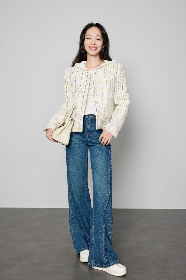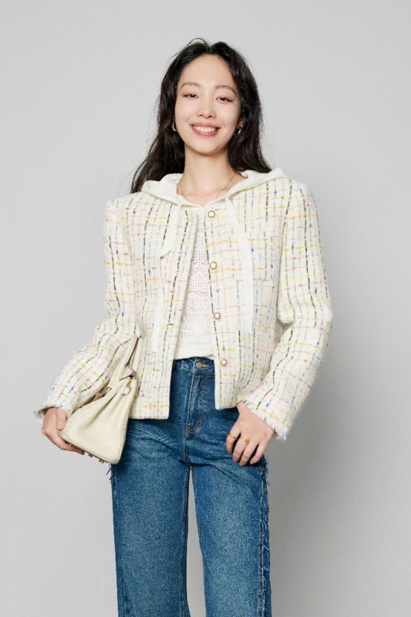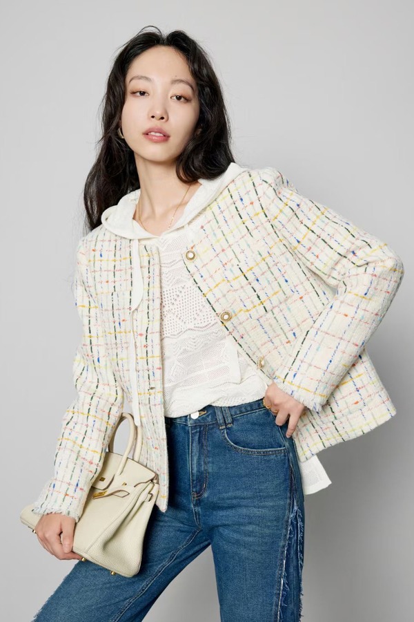 Le Malene 圆领彩色线条小香风羽绒外套 19857