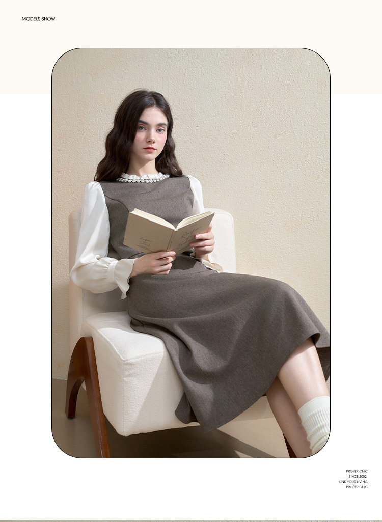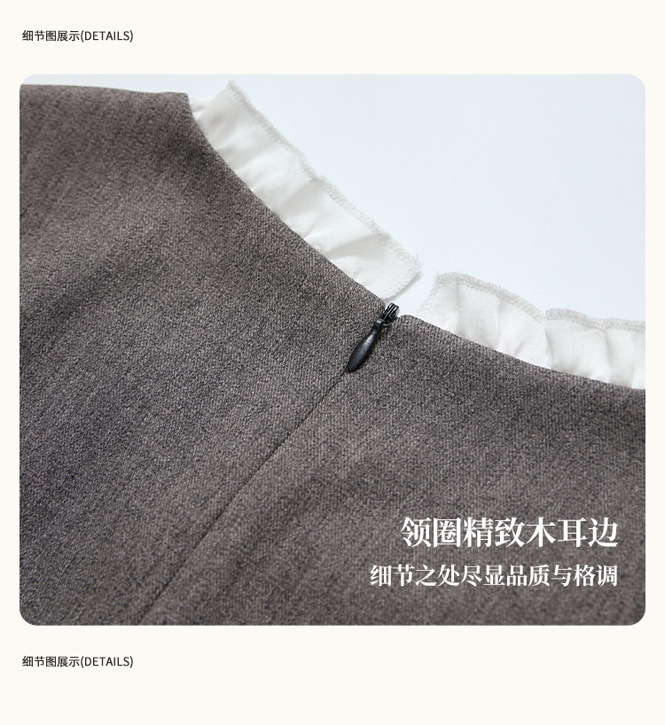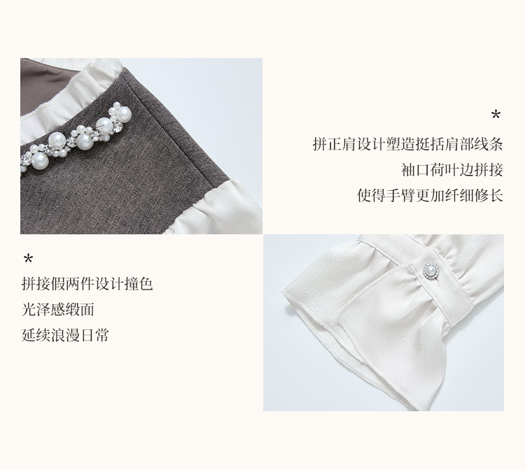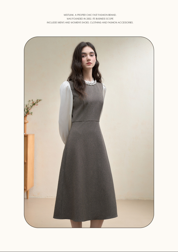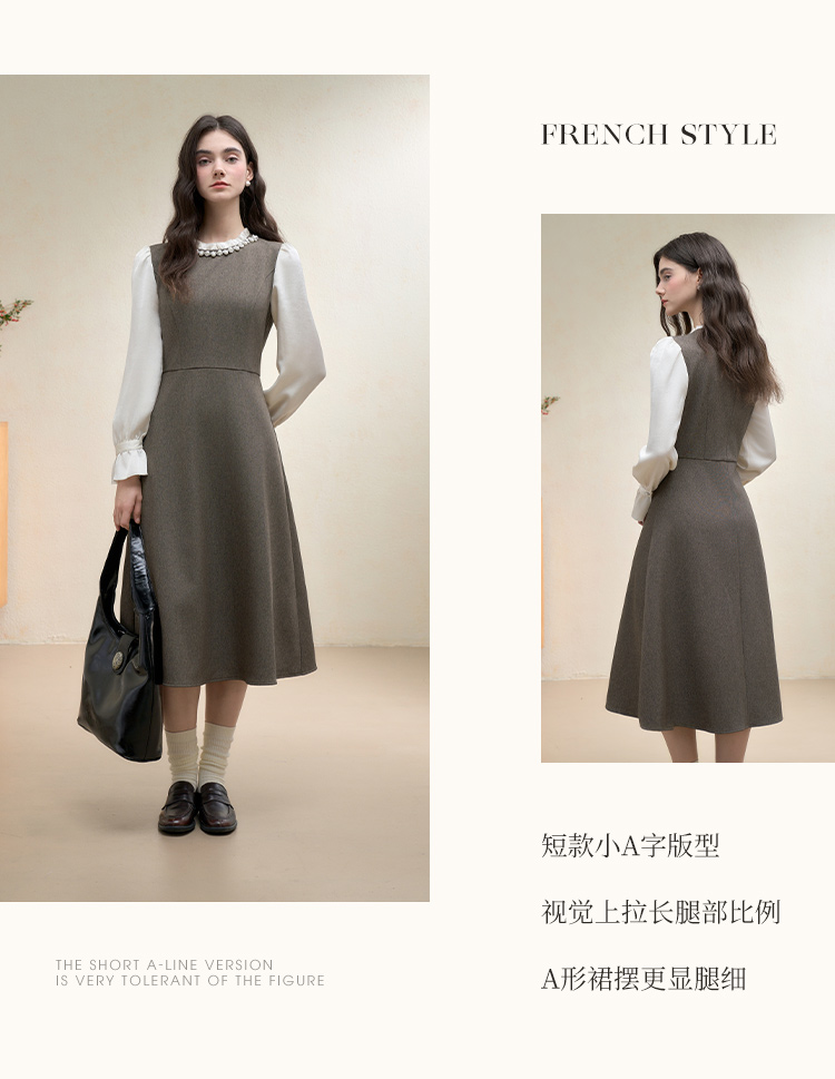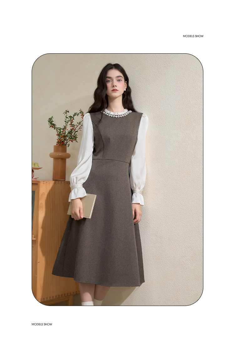 西遇法式名媛钉珠领口高级感通勤连衣裙女秋季假两件A字长裙V2951222