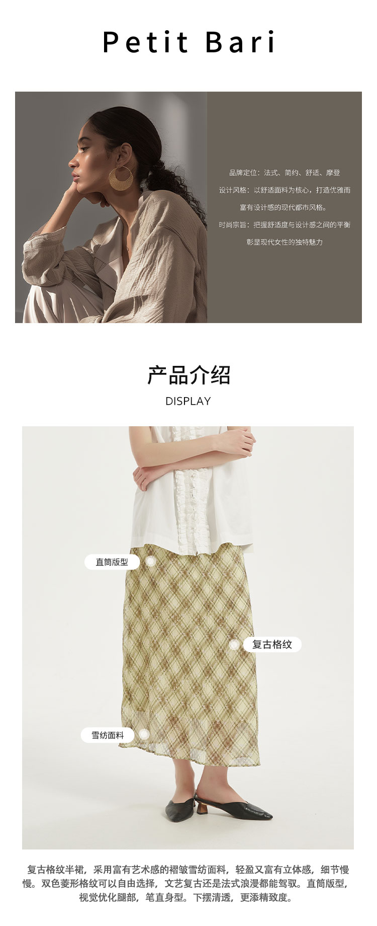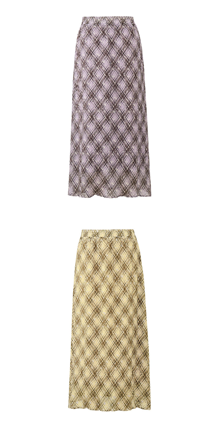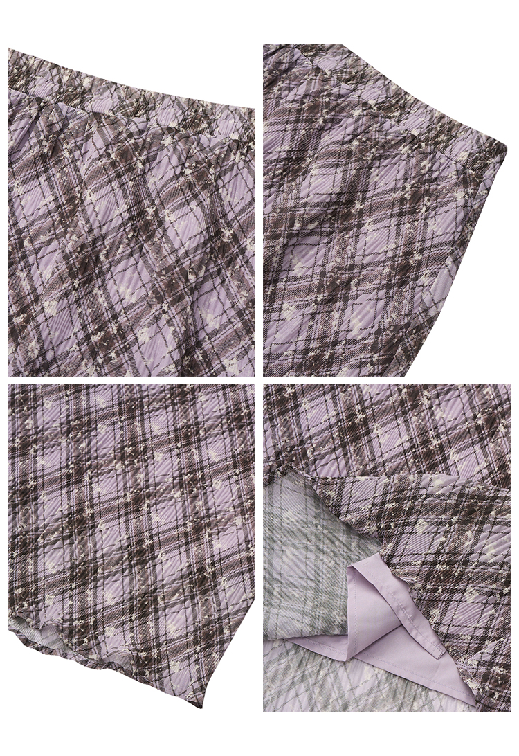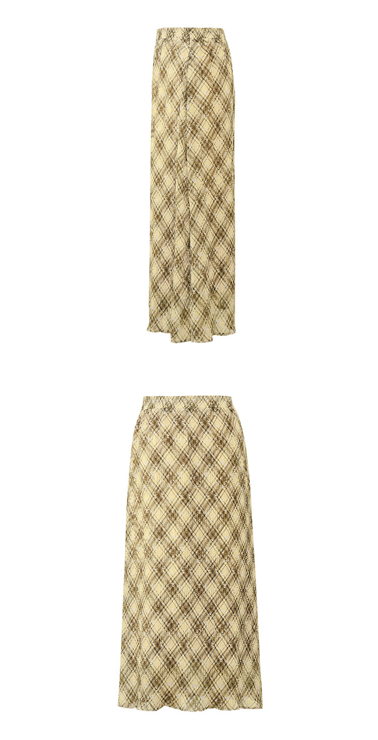 【2件9折】【Petit Bari】(多色)复古法式格纹褶皱直筒半身裙