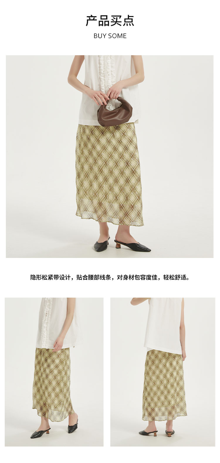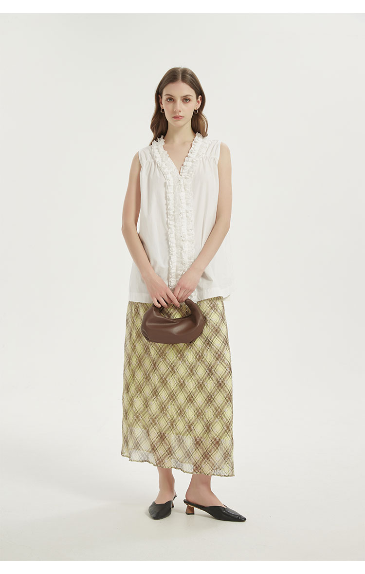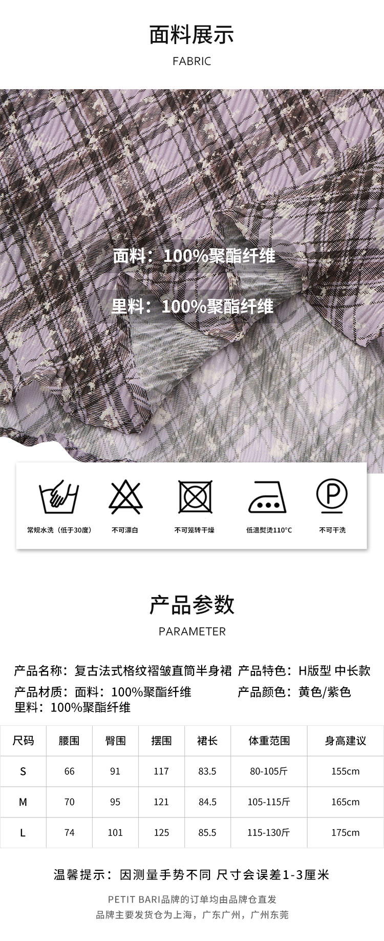 【2件9折】【Petit Bari】(多色)复古法式格纹褶皱直筒半身裙