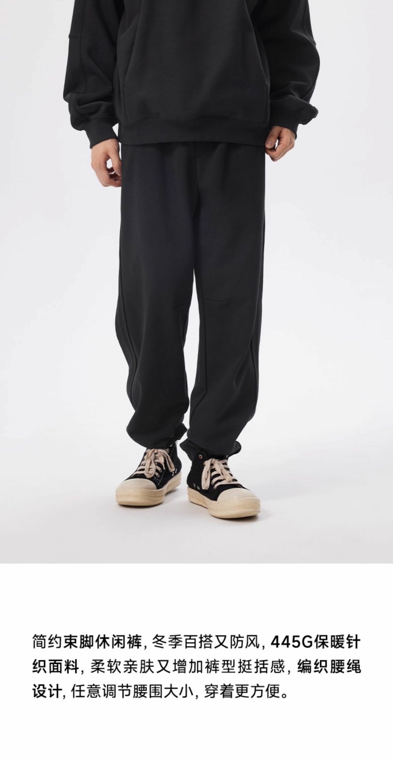 CHINISM赤尘 445G重磅黑色束脚卫裤男冬季休闲裤男士宽松加厚裤子