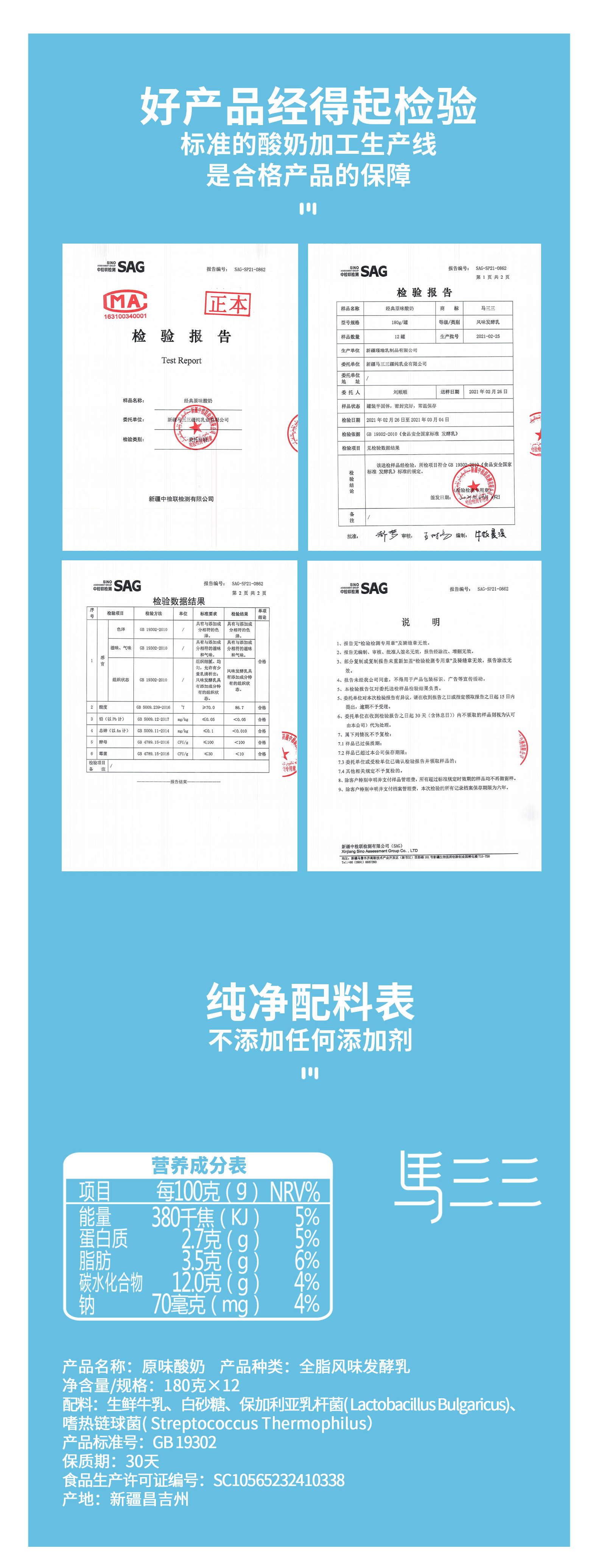 自然发酵,每一罐马三三酸奶都是单杯独立发酵,保证菌群的纯正。
