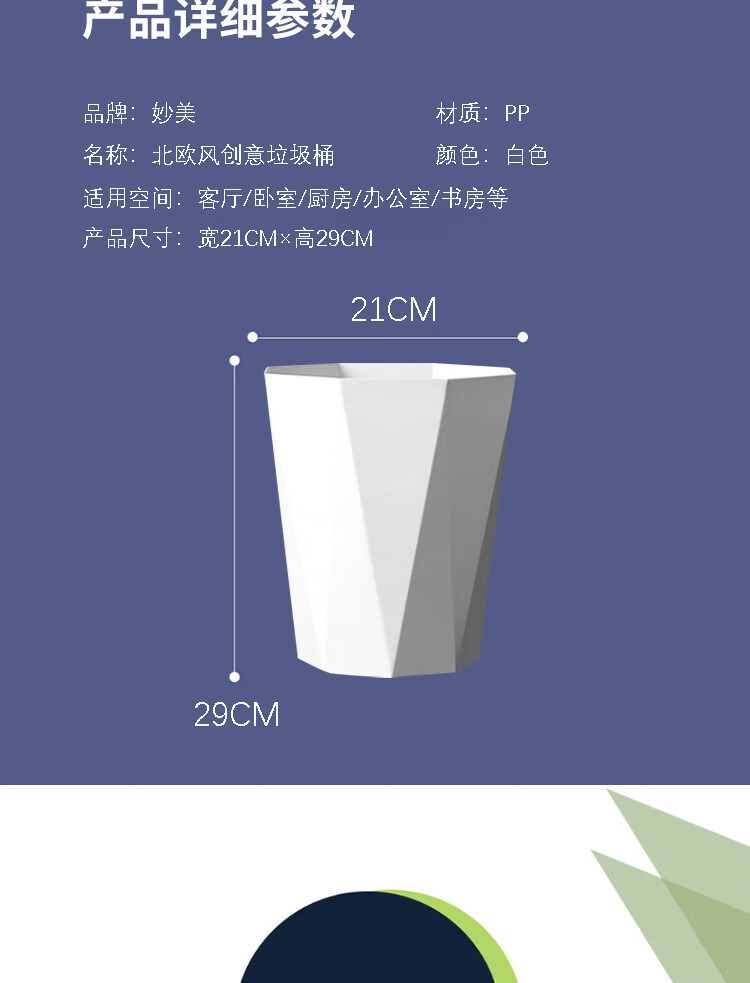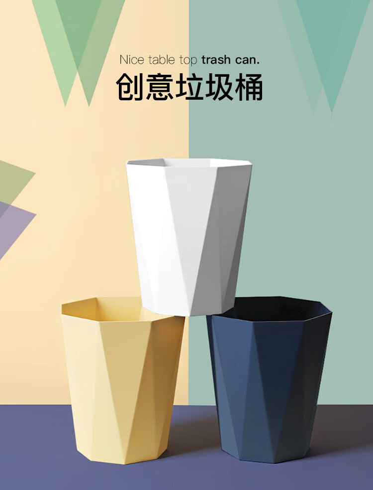 妙美 北欧风简约垃圾桶家用客厅卫生间厨房无盖创意卧室办公室11L 100012314850