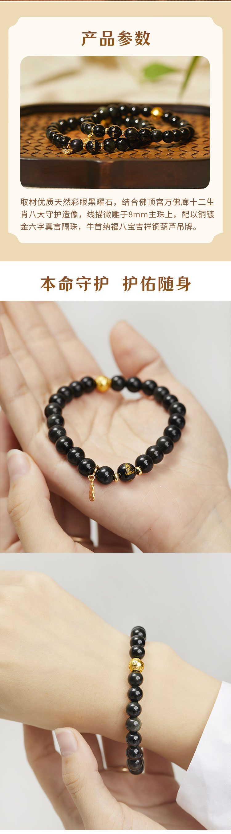 牛首山牛守万福生肖冰种曜石手串情侣天然小众百搭生日礼物