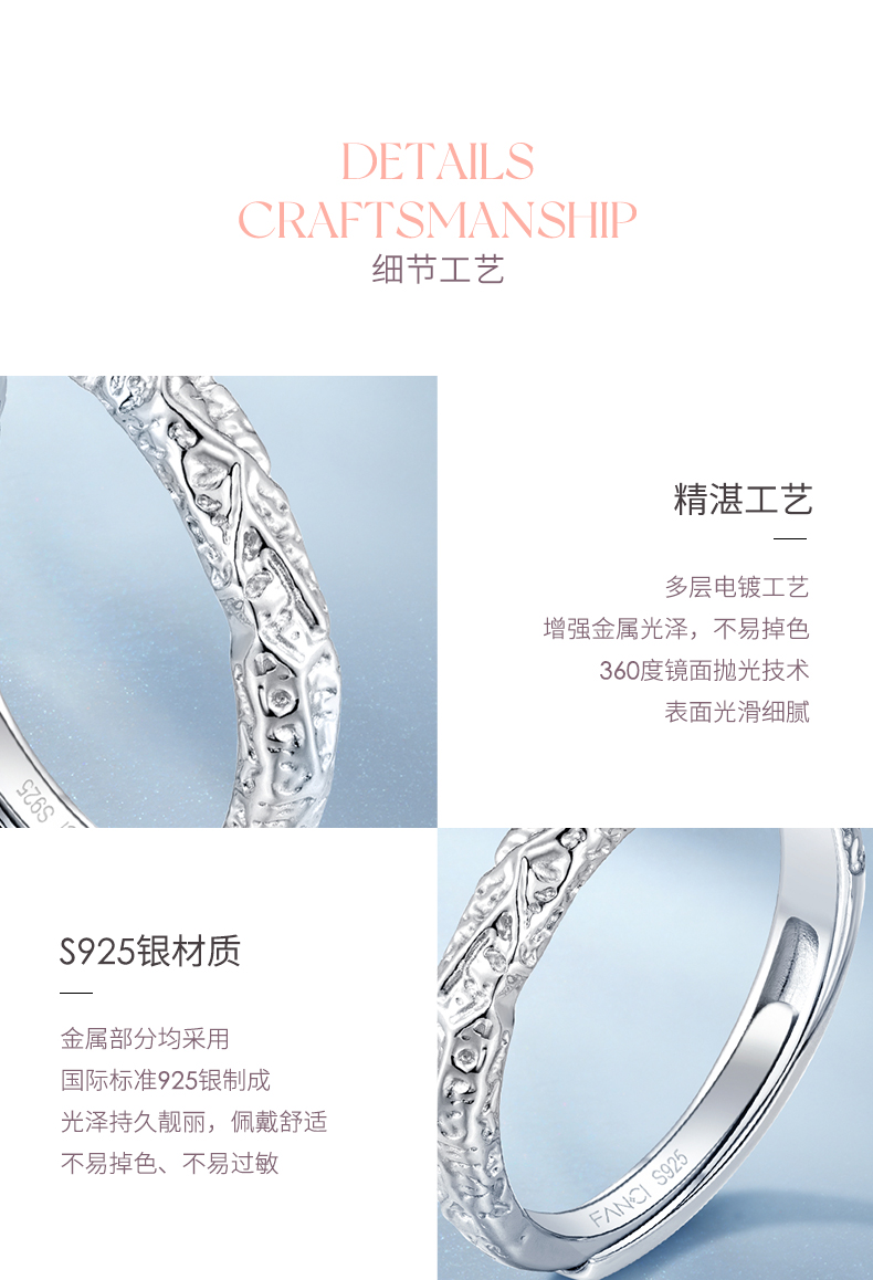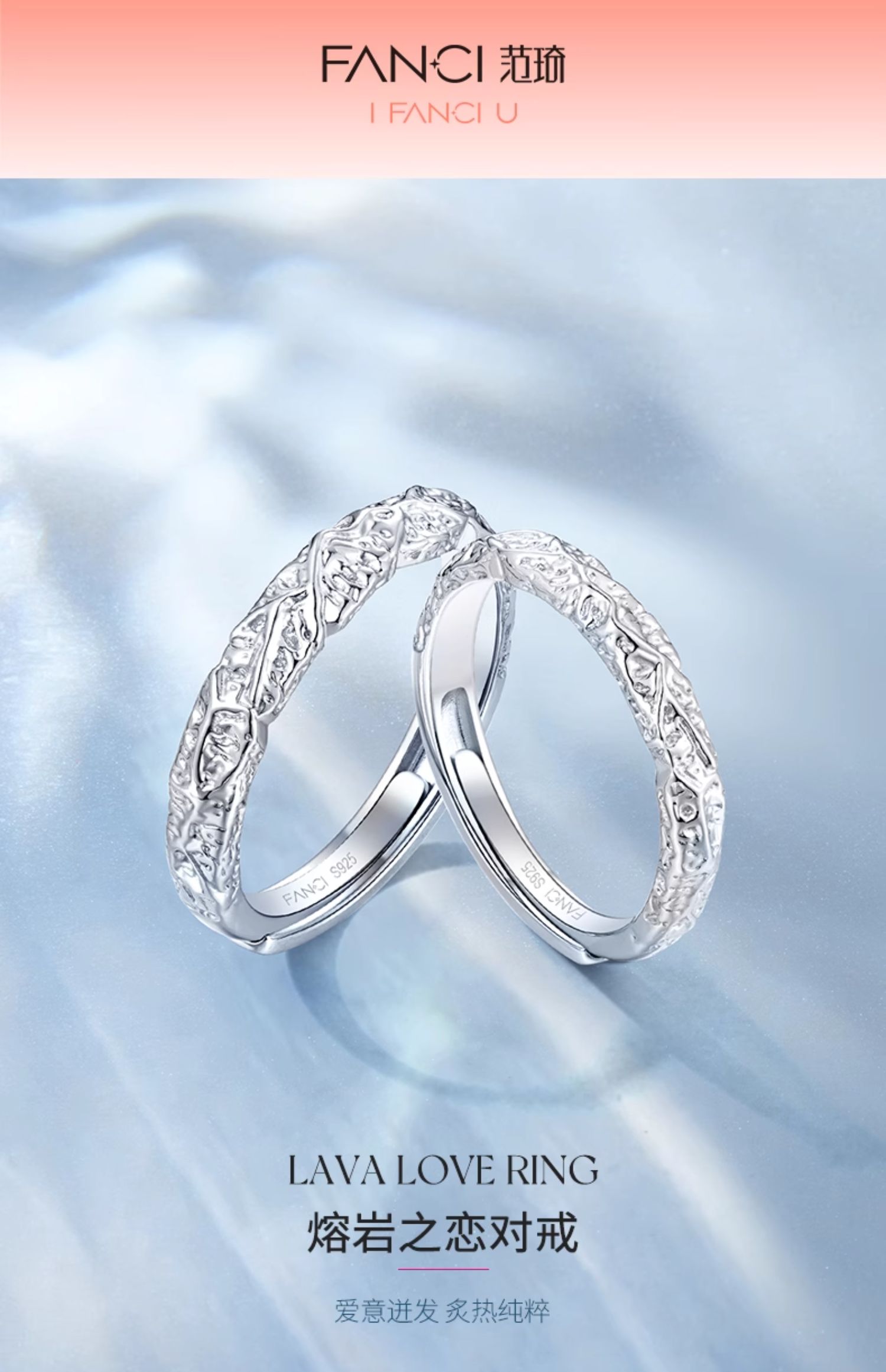 【熔岩之恋对戒】Fanci范琦925银+足银 时尚小众情侣开口戒指纪念日送男友礼物送女友生日礼物