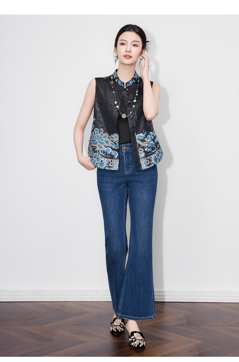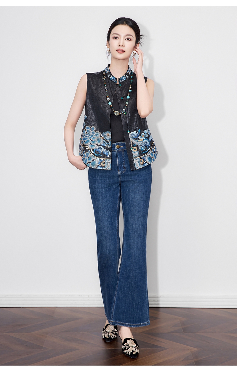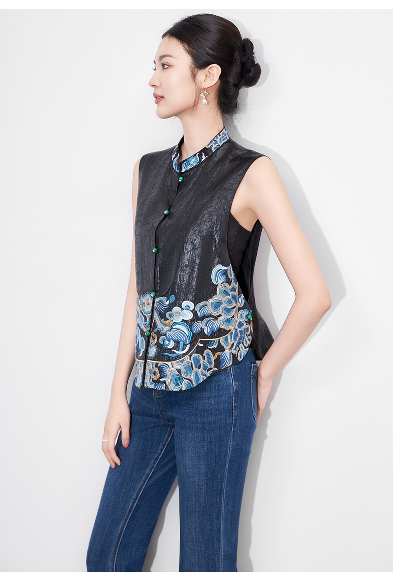 新中式祥云刺绣裂纹立领单排扣马甲背心