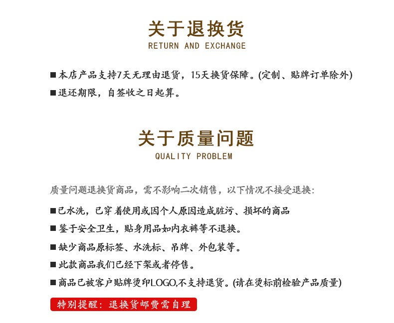 【售后政策】袜子为贴身服饰,无质量问题不支持7天无理由退换货