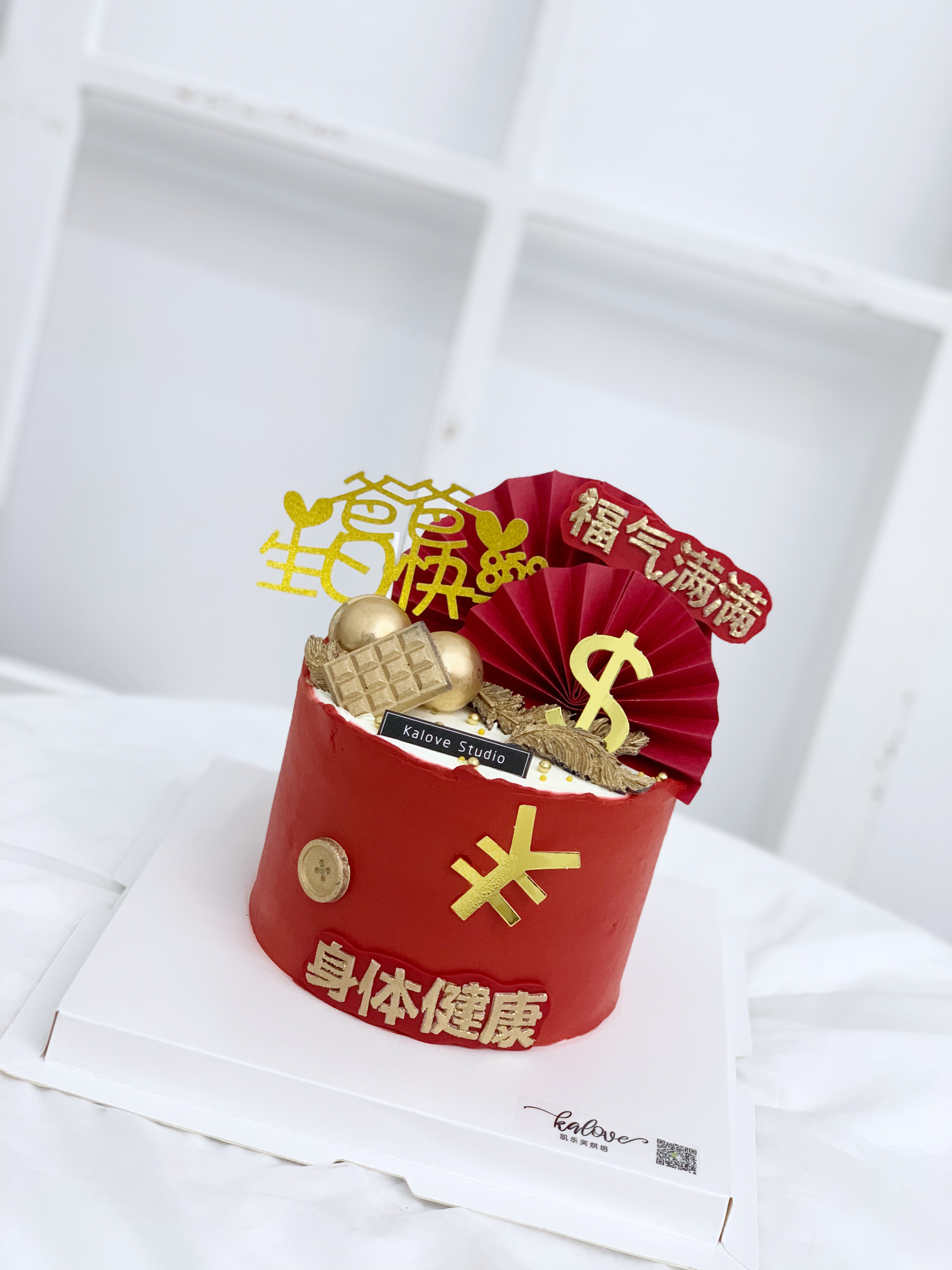 红色喜庆祝寿长辈福字寿桃蛋糕 商品图0