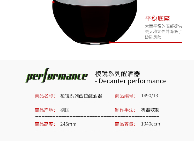 RIEDEL MERLOT奥地利进口梅洛棱镜轻赢水晶玻璃醒酒器分酒壶家用Riedel棱镜系列西拉醒酒器1040ccm