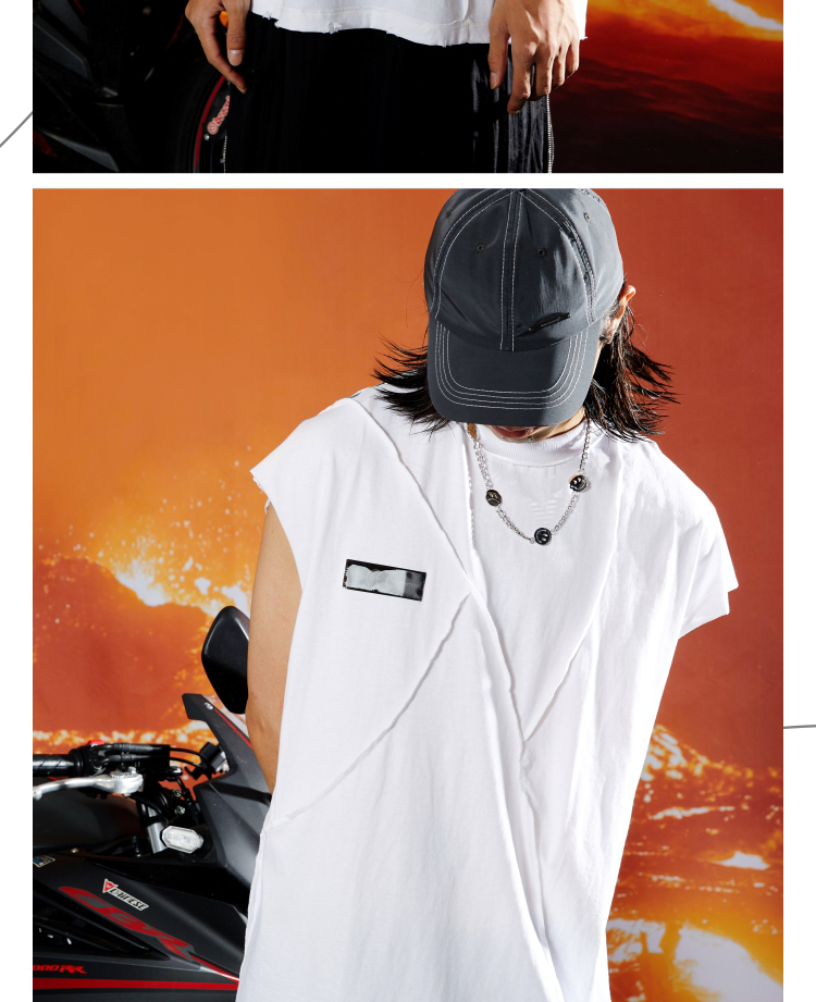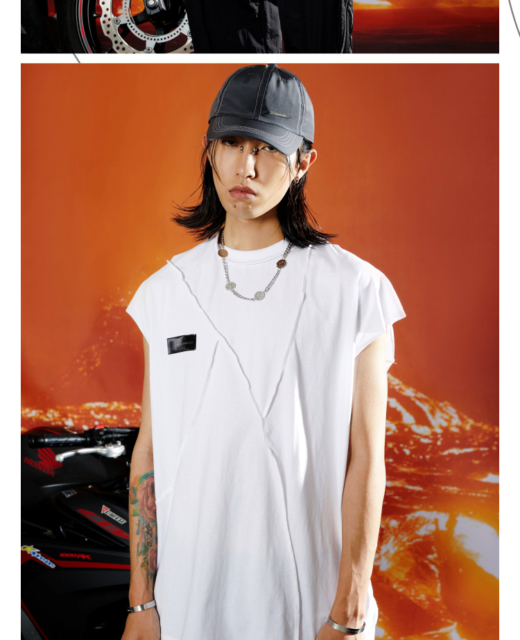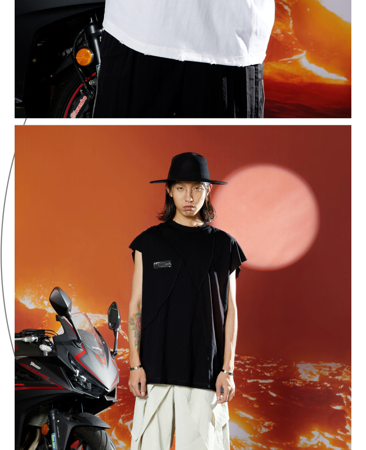 WHISTLEHUNTER(WSTHT)基础圆领磨边百搭无袖 金属标打底坎肩背心