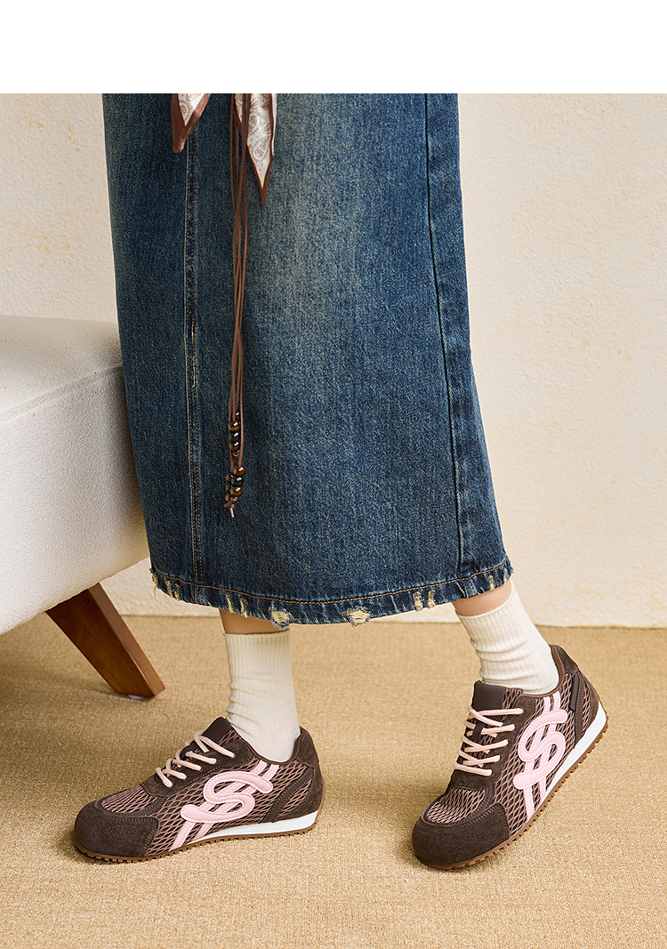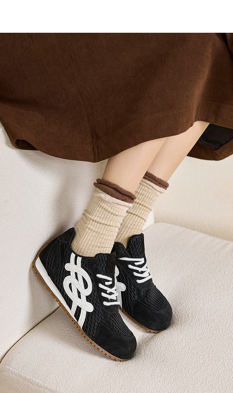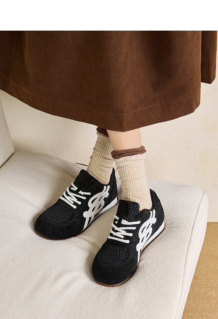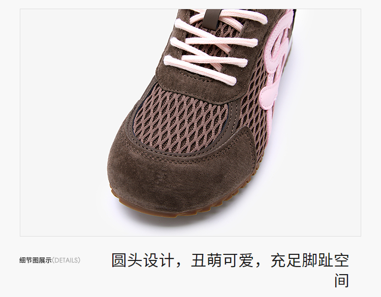 西遇轻便德训鞋女新款秋季丑萌复古平底休闲鞋子内增高运动鞋V1857054