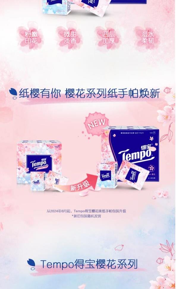 【自营】 得宝 手帕纸 便携式 4层手帕纸 无香/樱花味 24包/36包