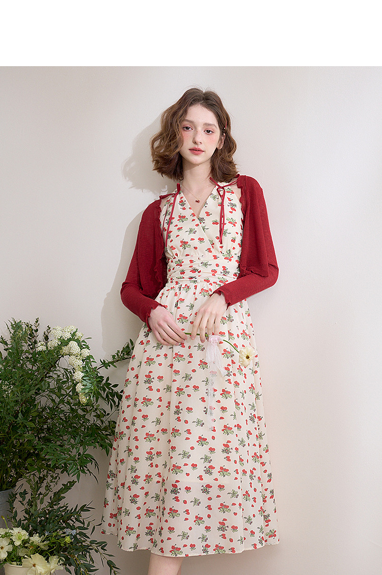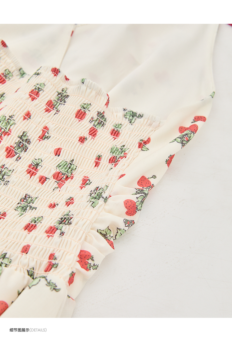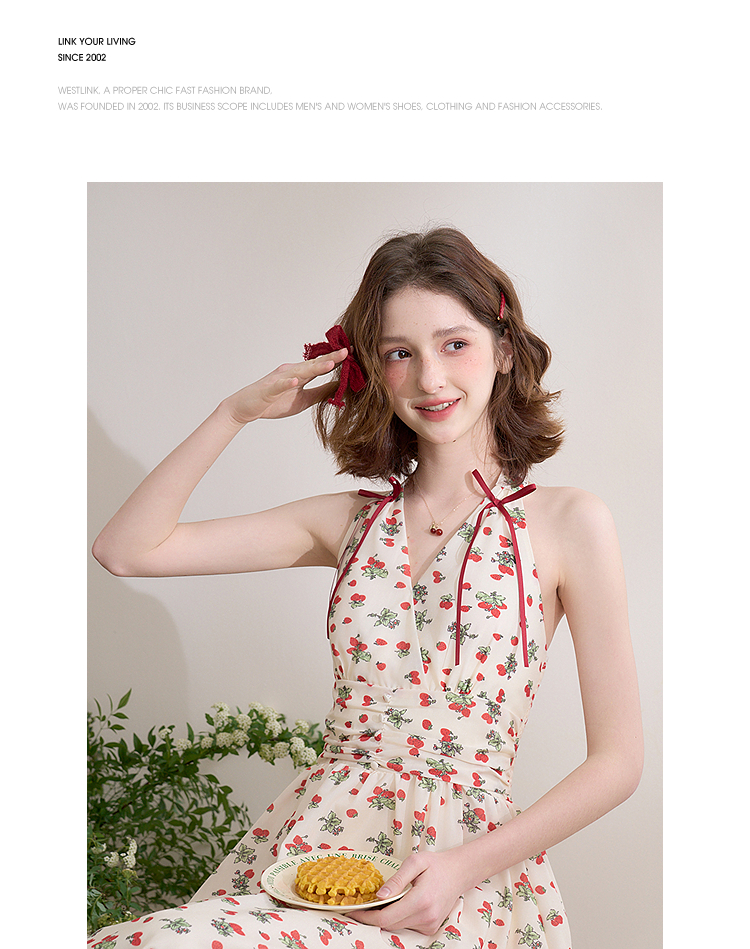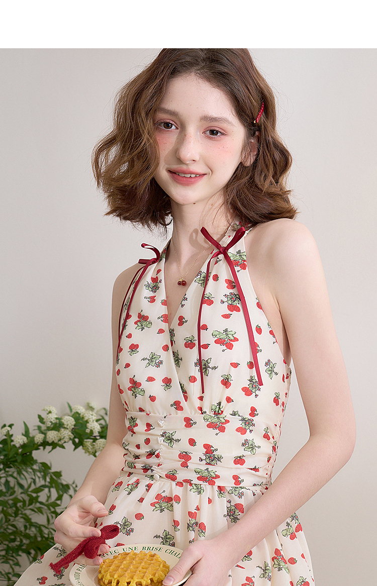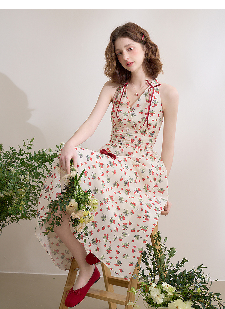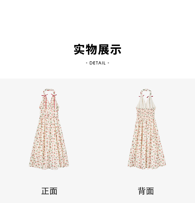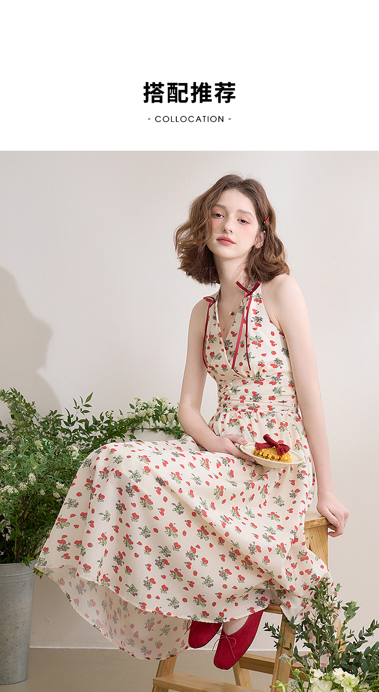西遇碎花挂脖连衣裙女夏季新款法式v领收腰海边度假风长D0050485/D0050773/V0050774