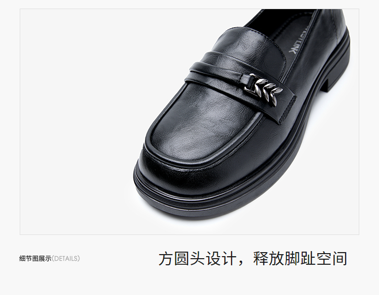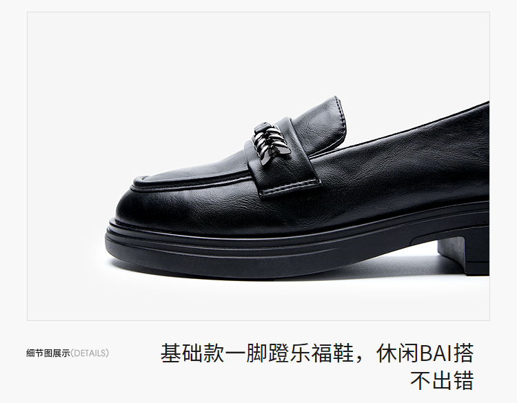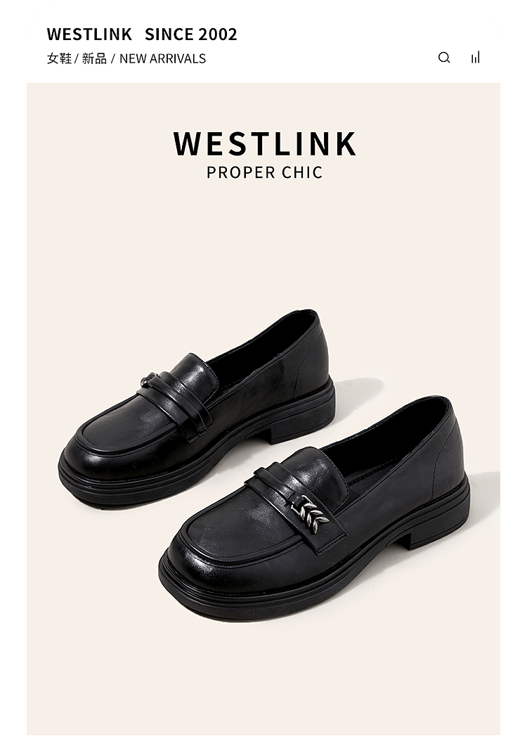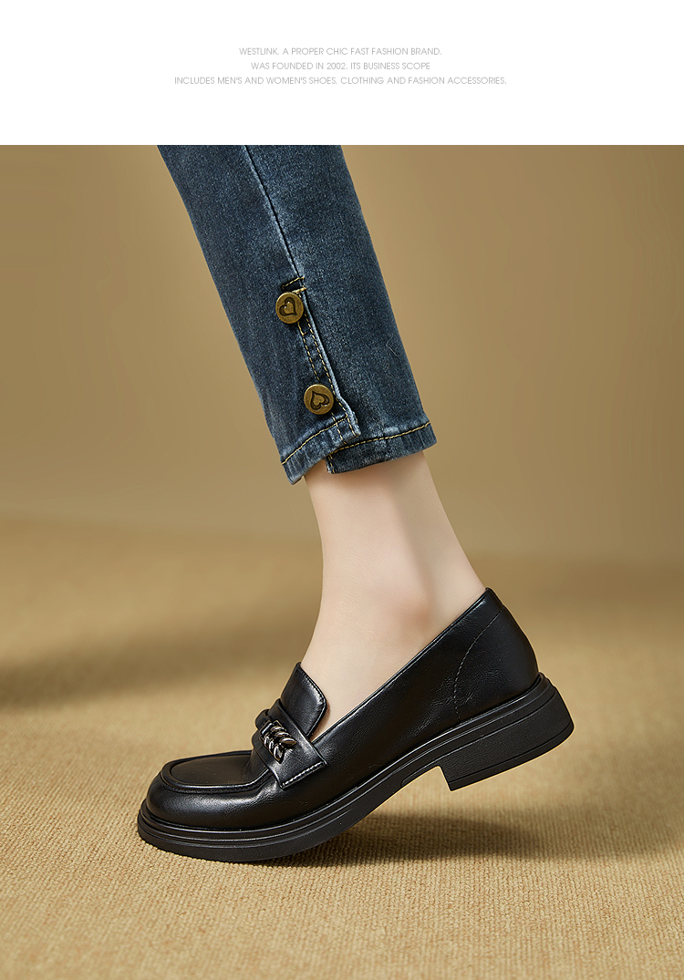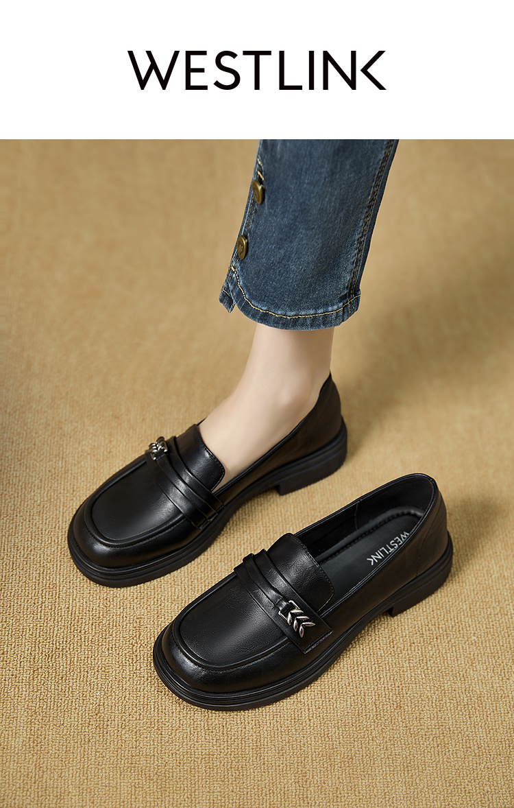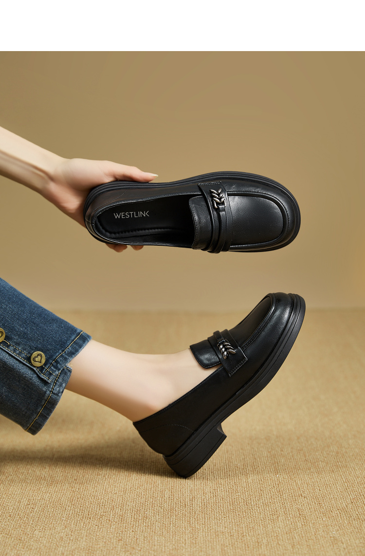 西遇黑色乐福鞋女新款秋季法式软底不累脚通勤女鞋粗跟小皮鞋V1857108