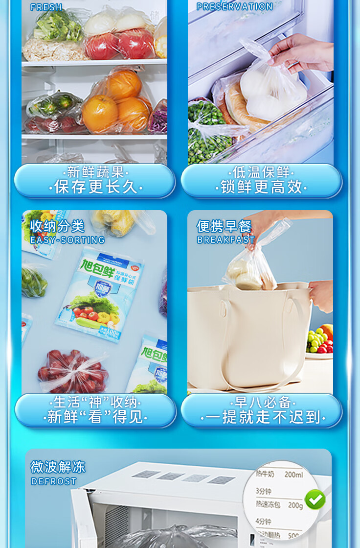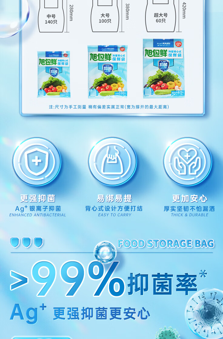 旭包鲜抑菌背心式保鲜袋(大号)100只装