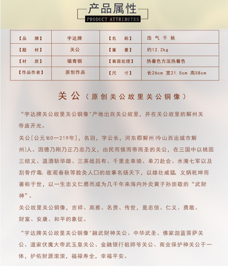 宇达青铜全铜摆件《浩气千秋》铜工艺品 关公礼品 家居装饰摆件