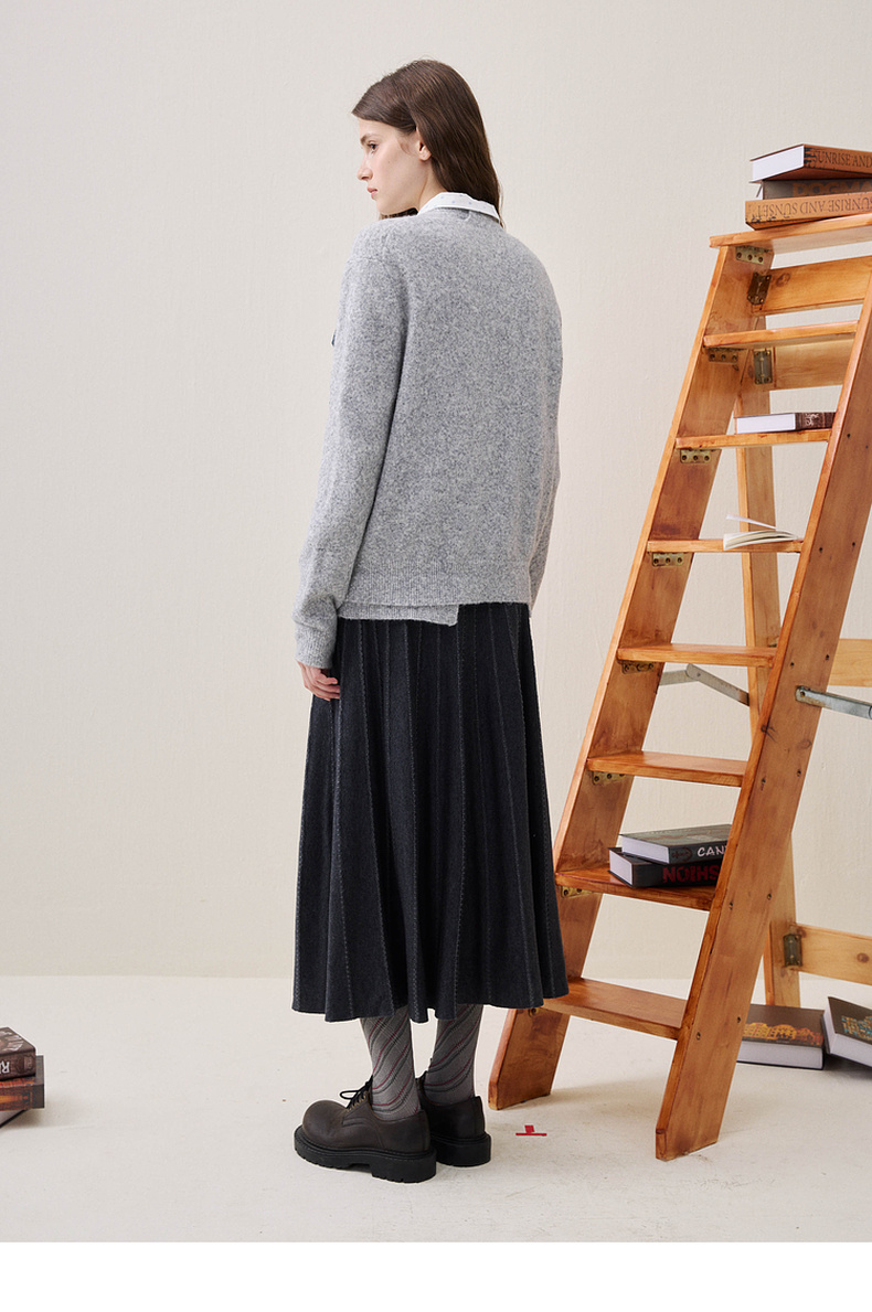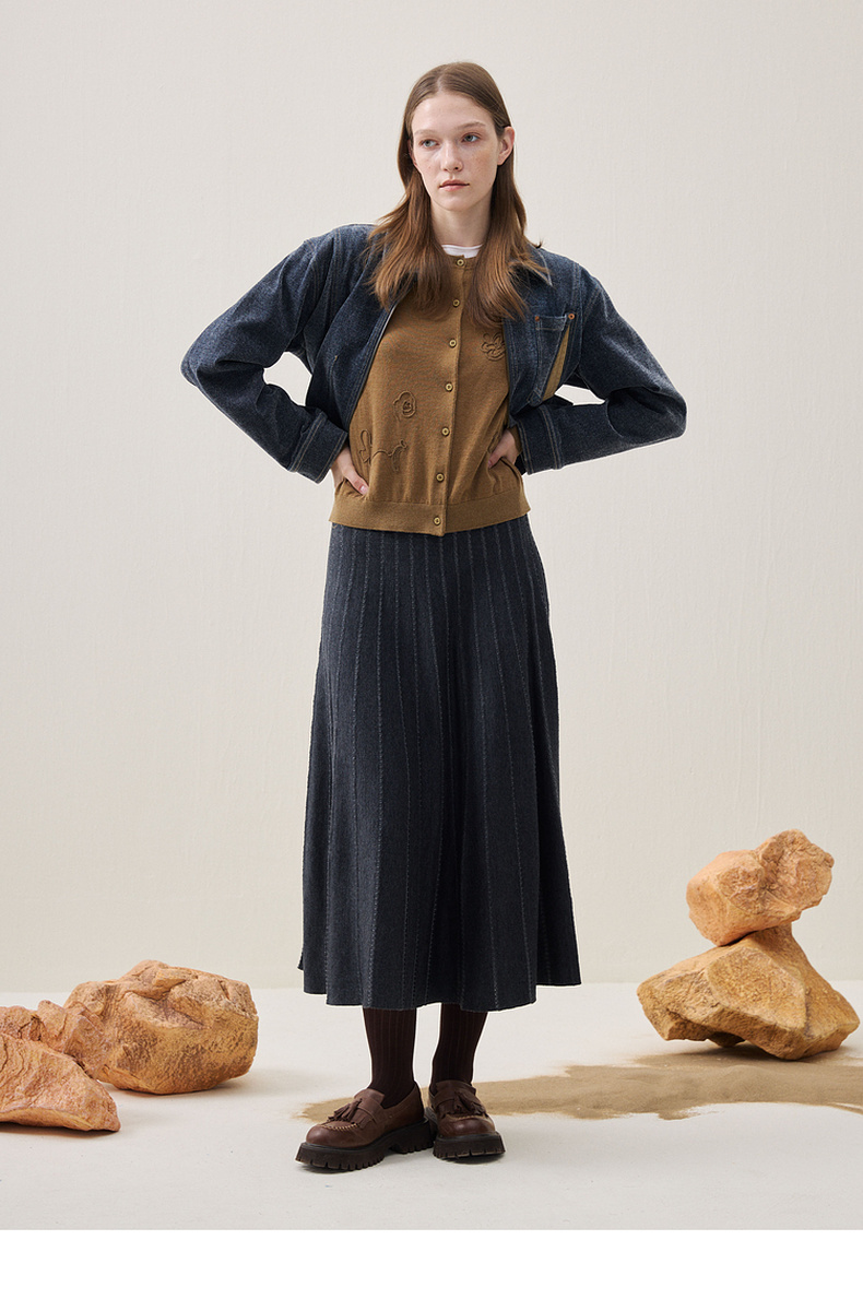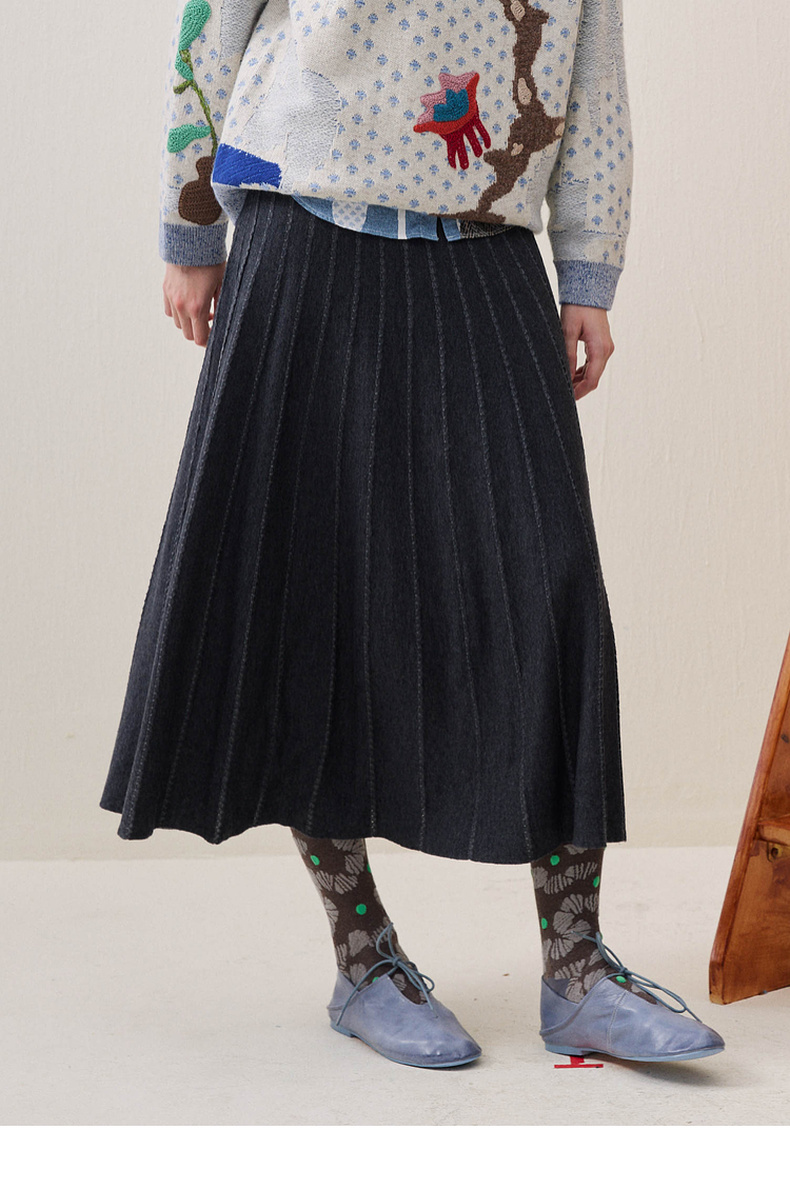 谜底针织半裙2025年冬季新品通勤垂顺优雅大摆中长裙女254MZ1901