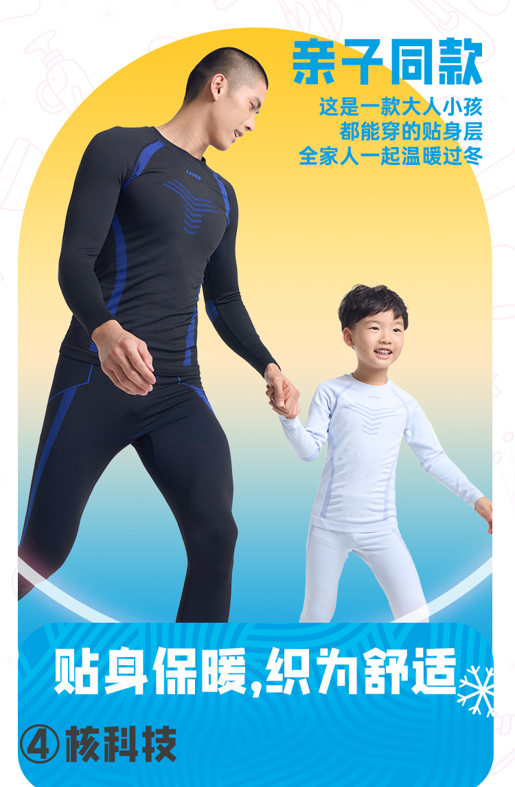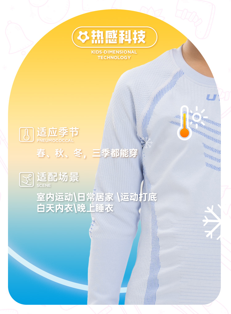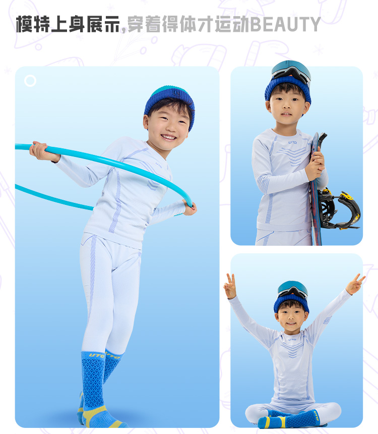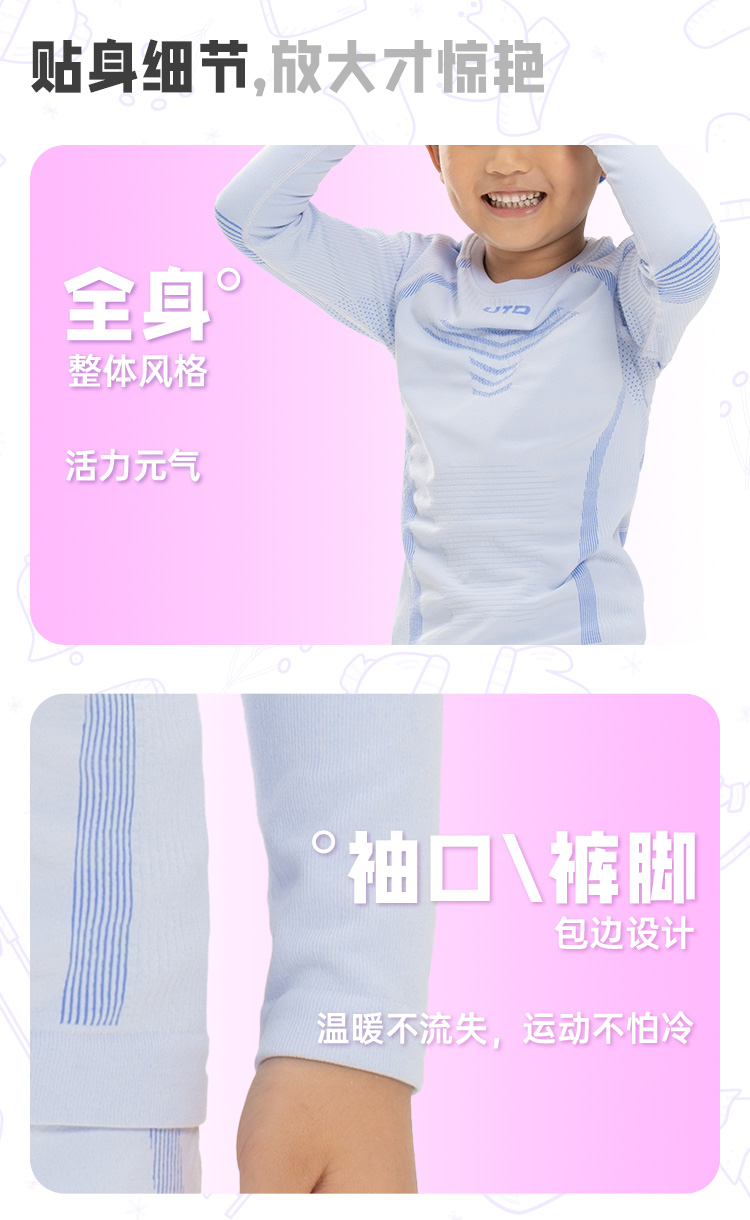 UTO/悠途户外运动保暖速干儿童跑步秋冬舒适套头快干功能内衣套装