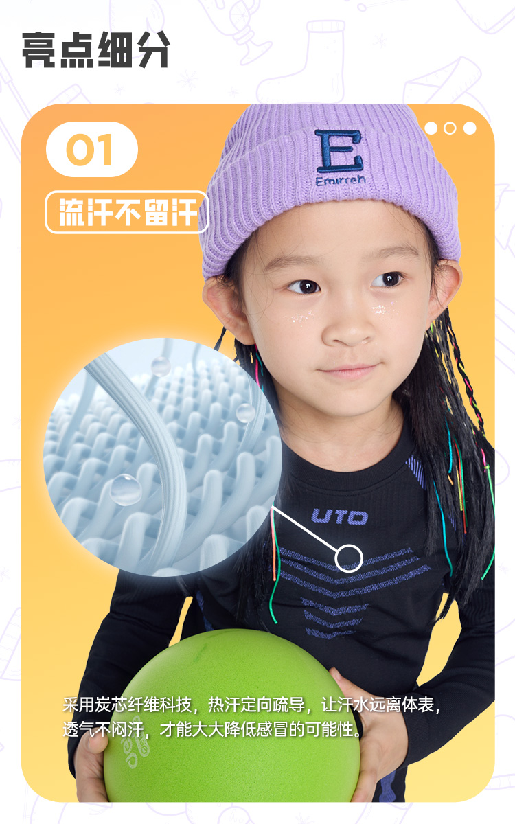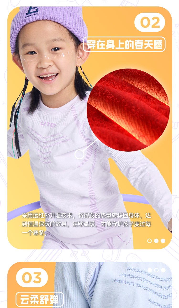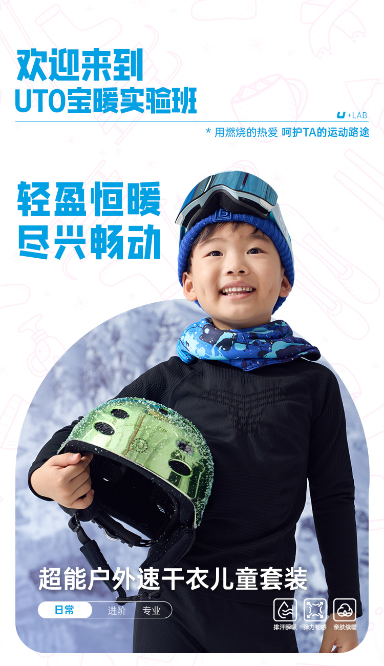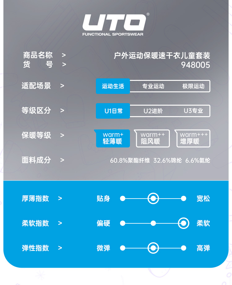 UTO/悠途户外运动保暖速干儿童跑步秋冬舒适套头快干功能内衣套装