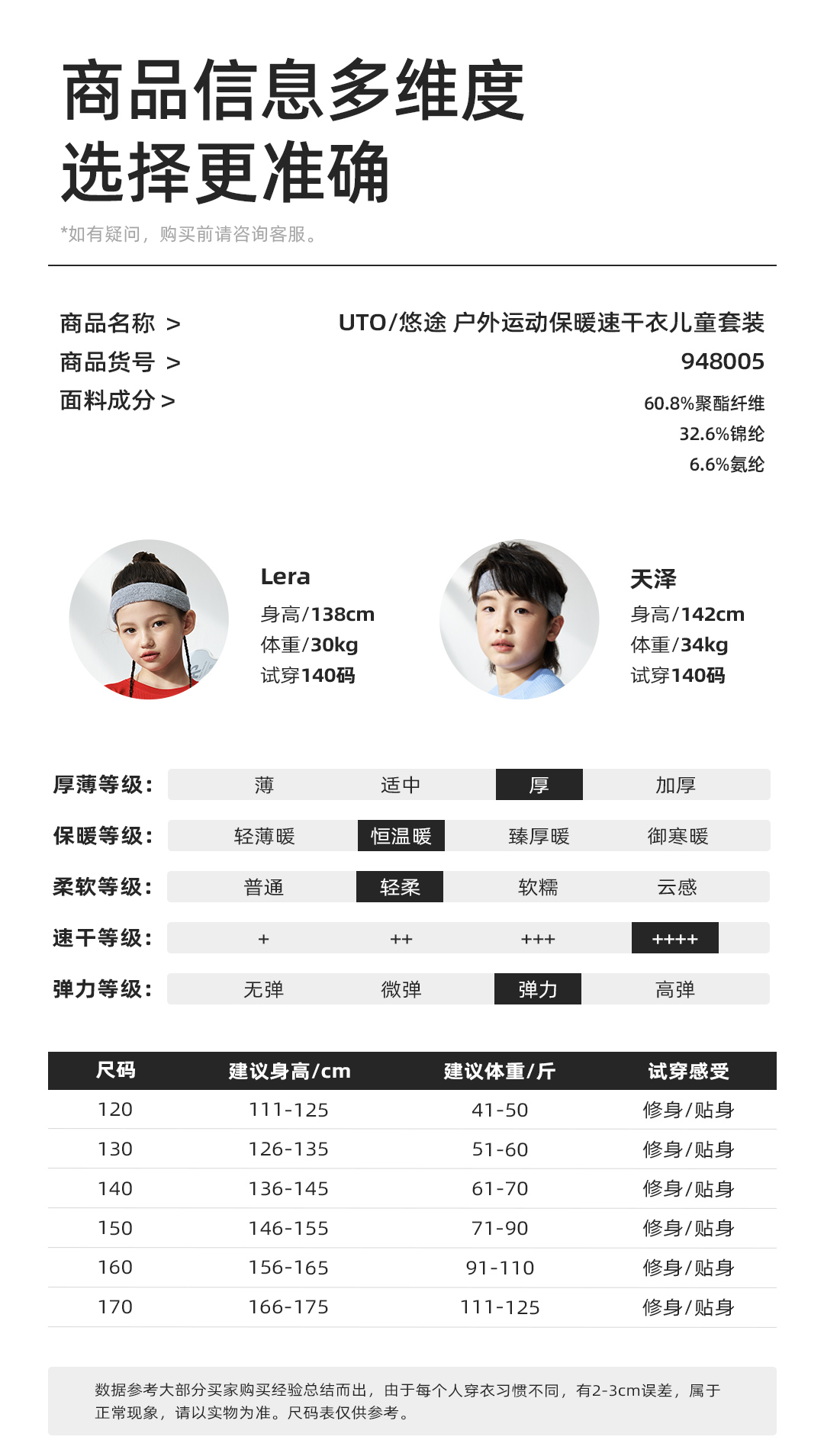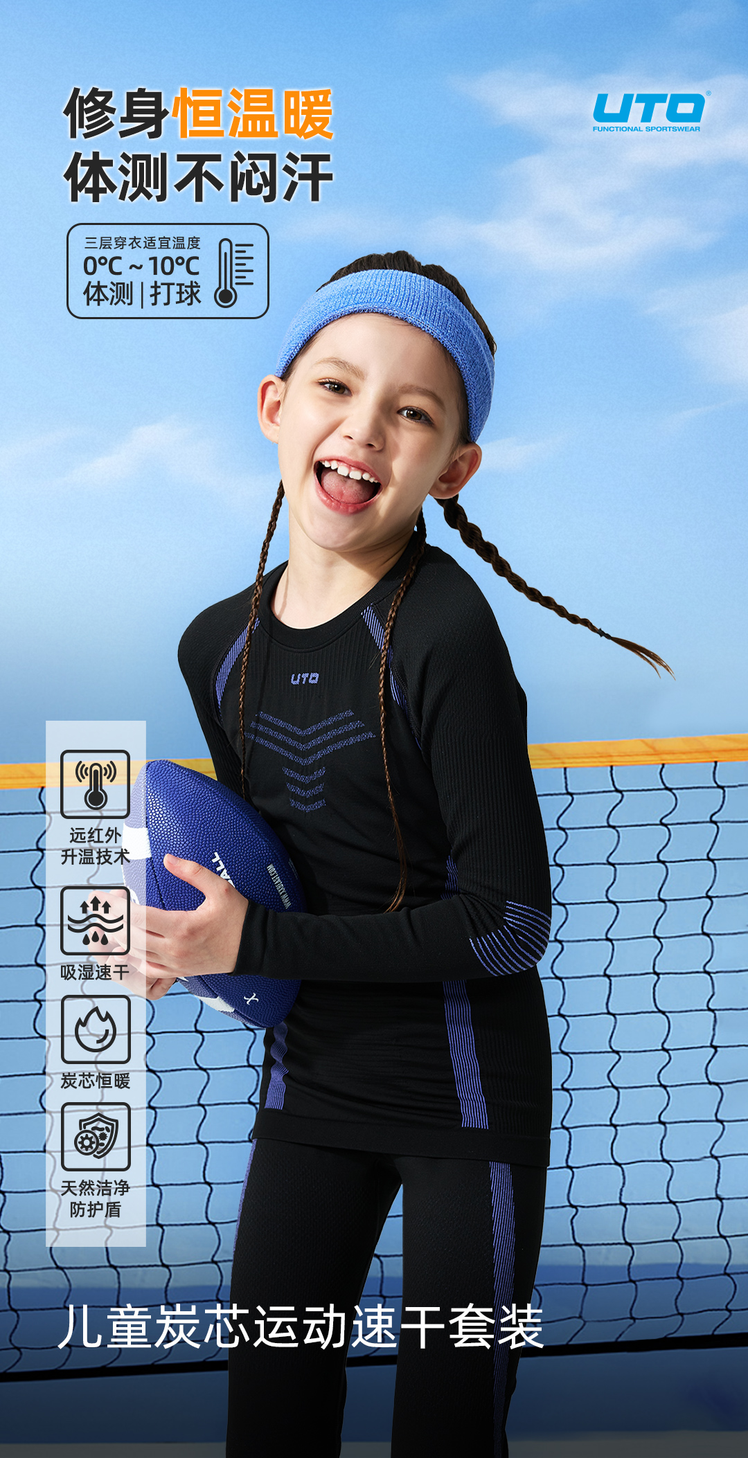 UTO/悠途户外运动保暖速干儿童功能内衣套装