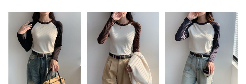 2024秋冬新款圆领撞色打底衫女韩版修身显瘦拼接打底上衣插肩袖 商品图3
