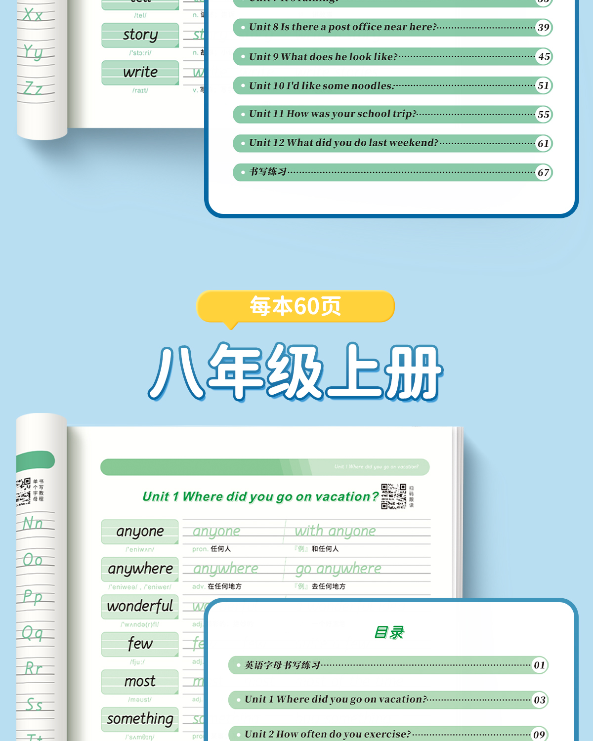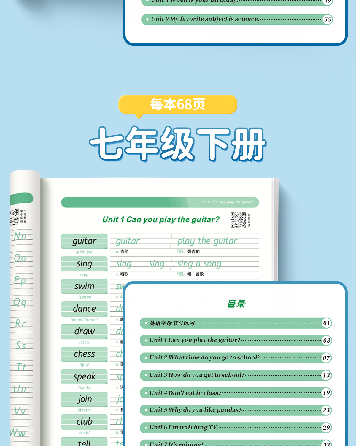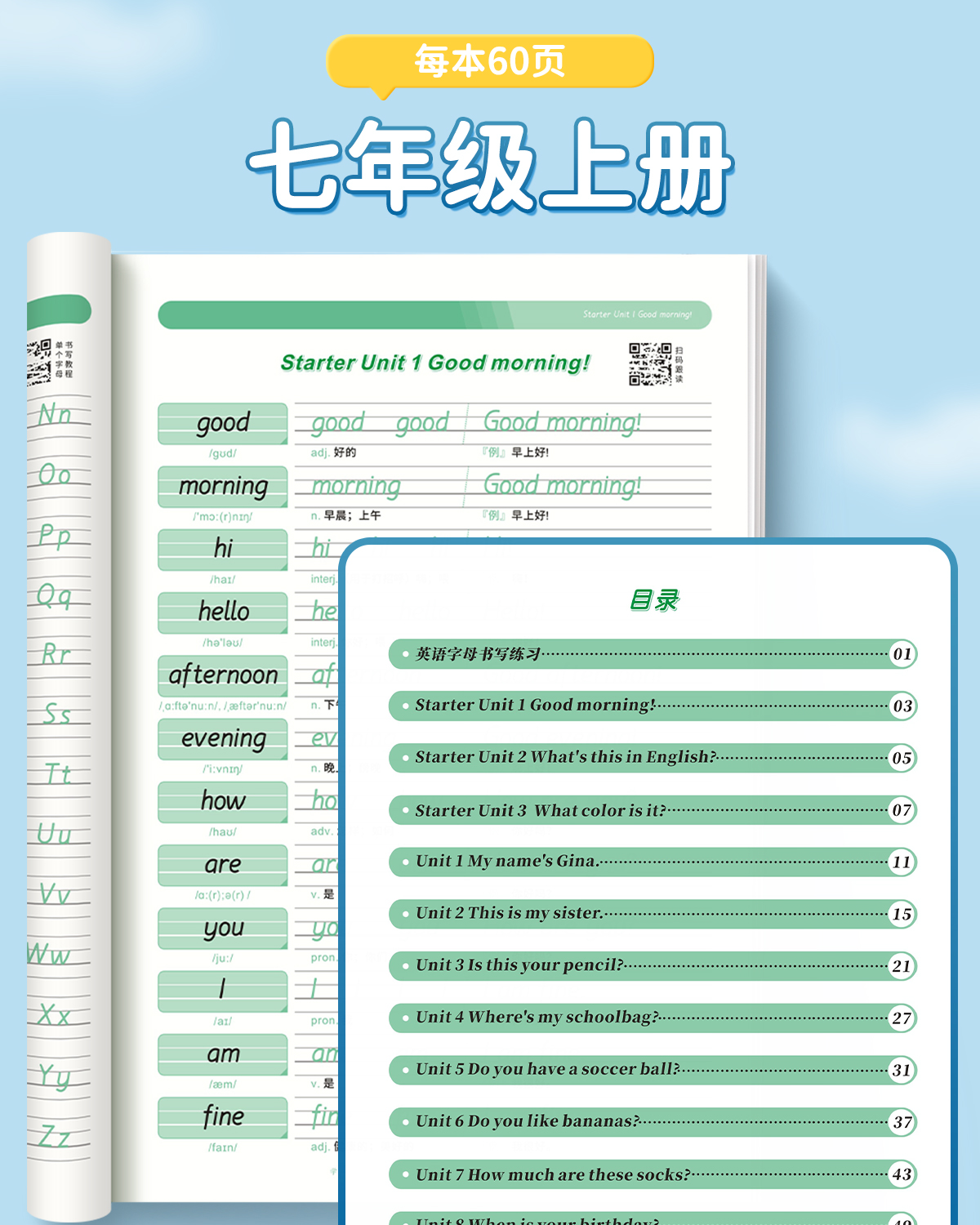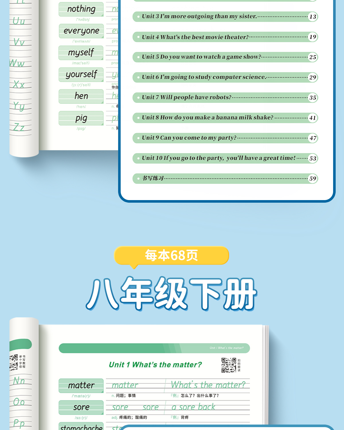 衡水体英语练字帖七八九年级上下册课本同步人教版男女生漂亮字体