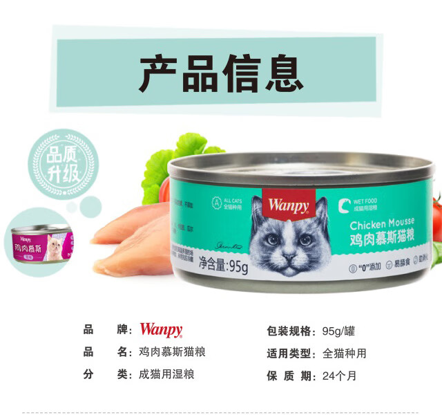 顽皮猫零食 慕斯罐头随机口味猫湿粮全价猫粮成猫幼猫宠物零食95g