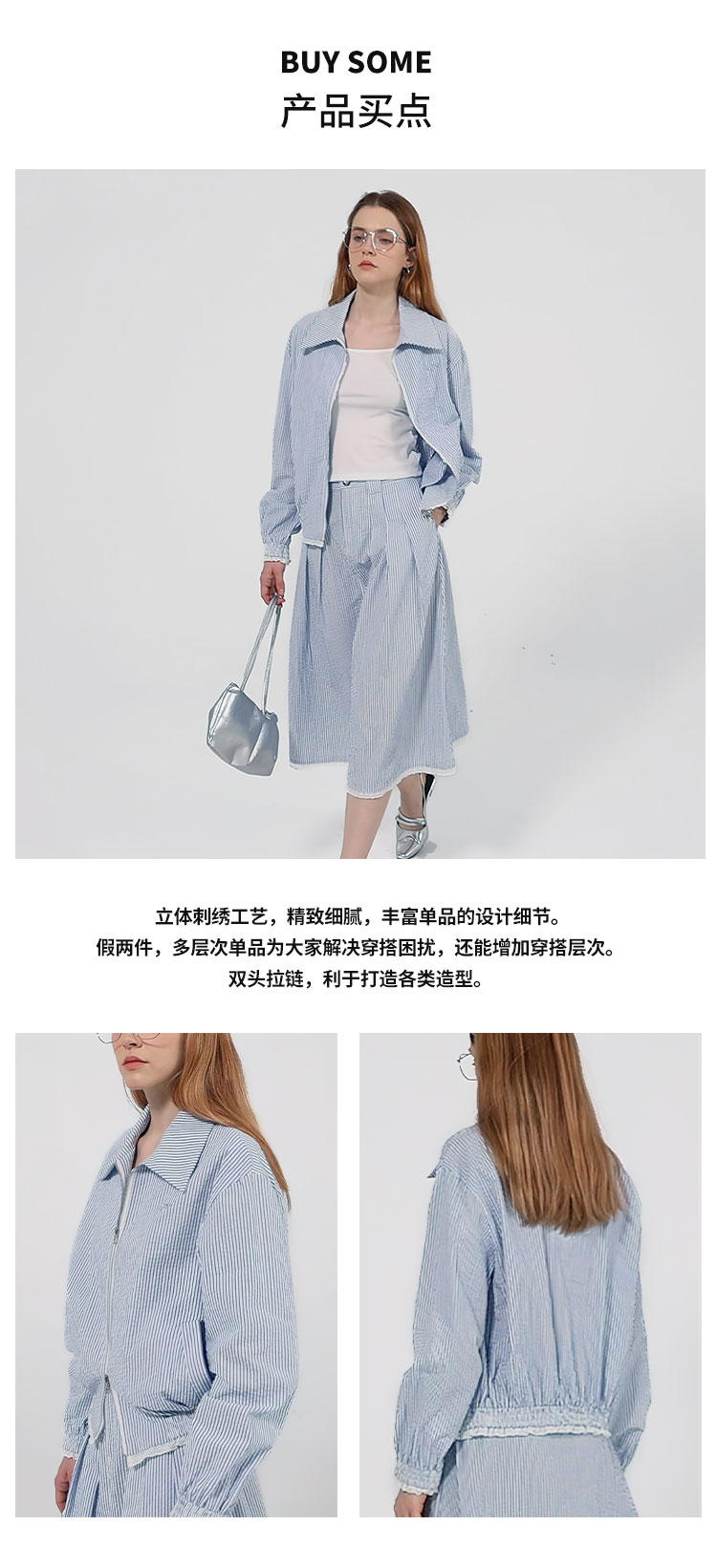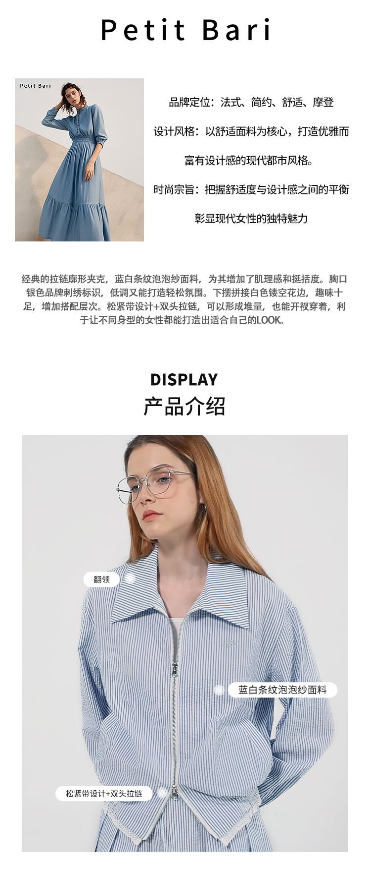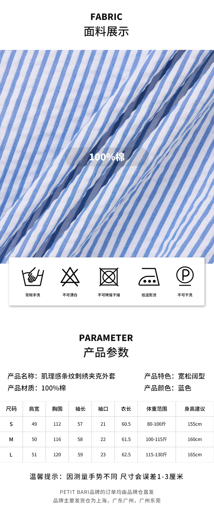 【2件9折】【Petit Bari】肌理感条纹刺绣夹克外套