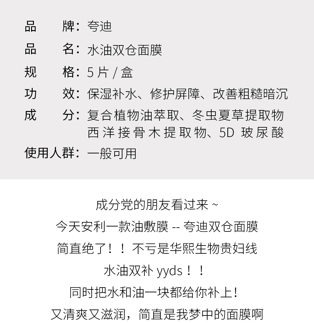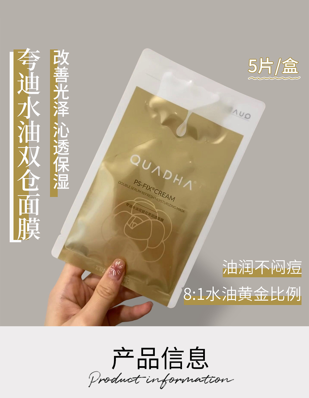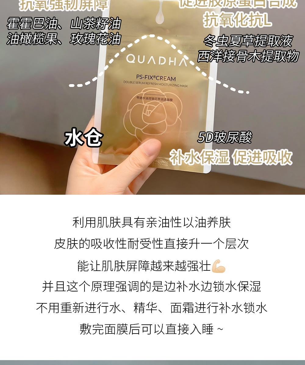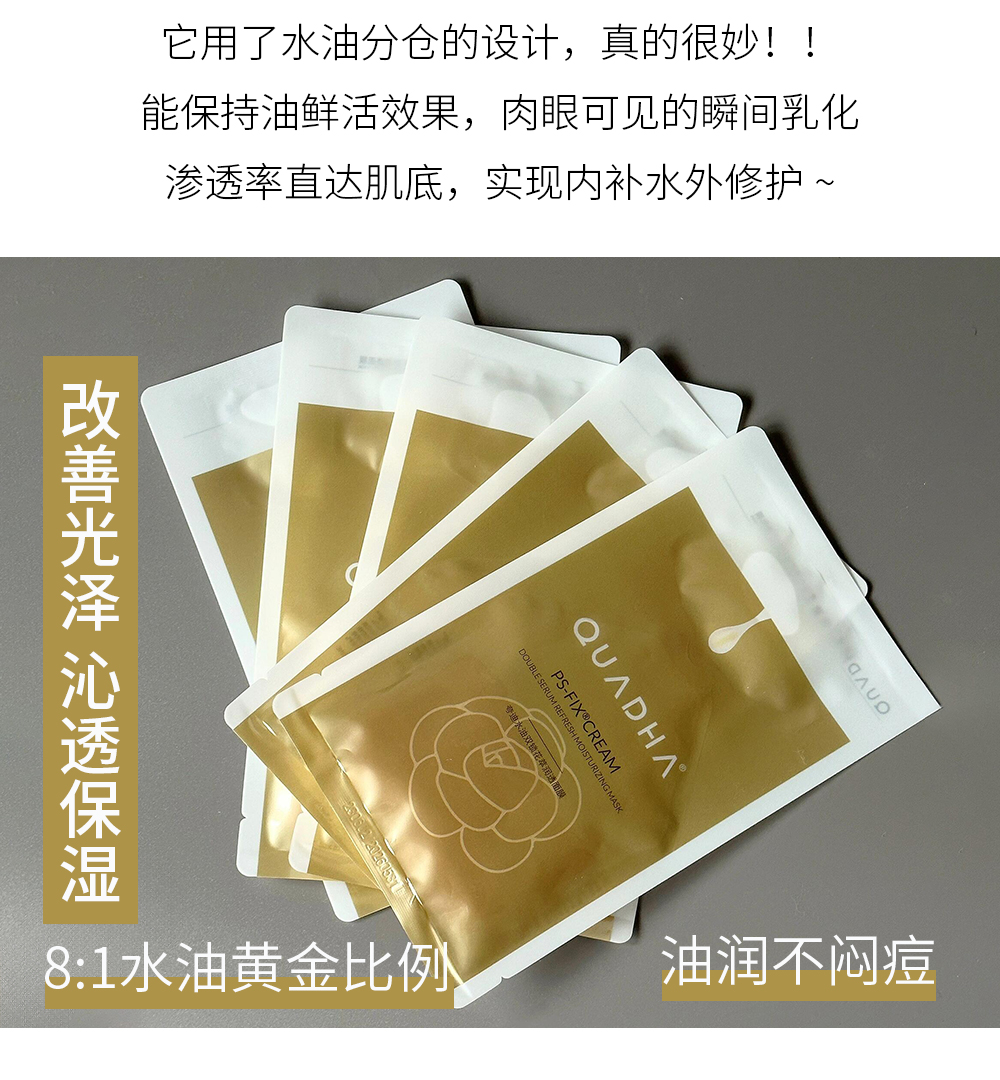 新品 QuadHA/夸迪水油双锁花萃润透面膜5片/盒
