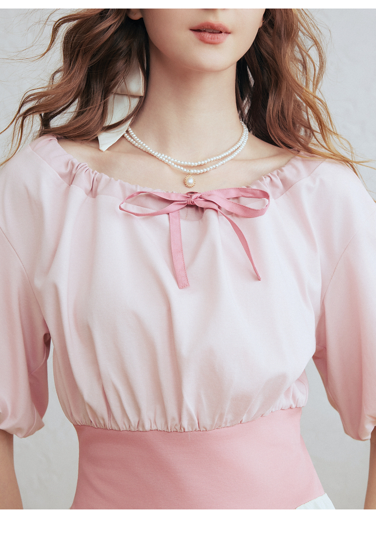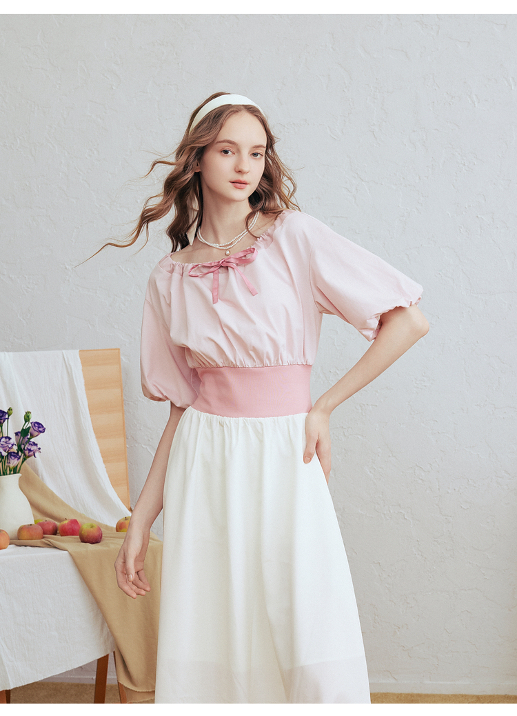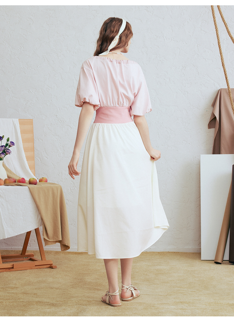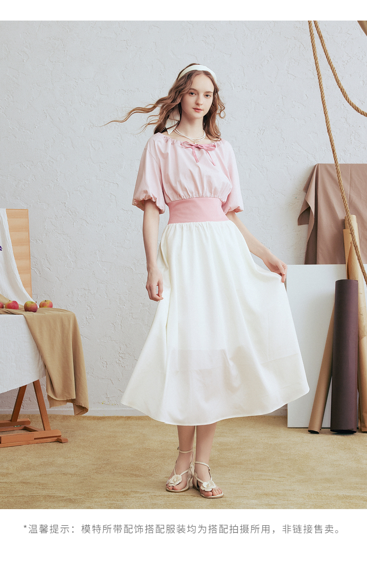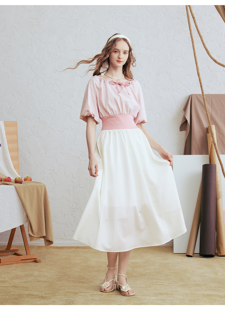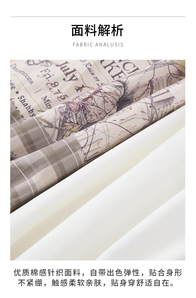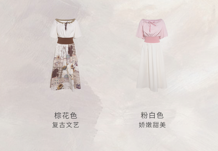 两三事梵高文艺风铃雏菊2026春新款复古印花拼接收腰泡泡袖连衣裙