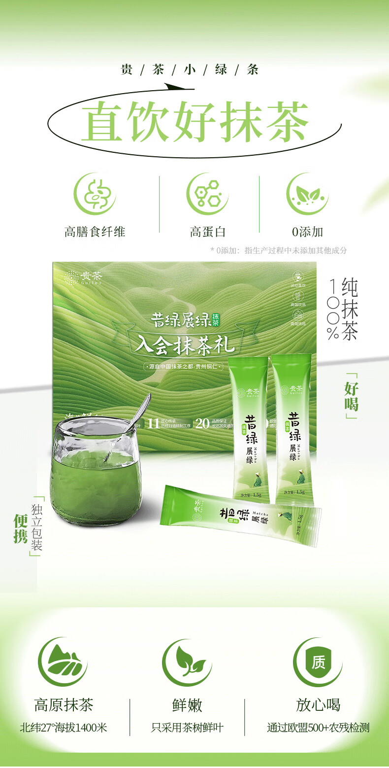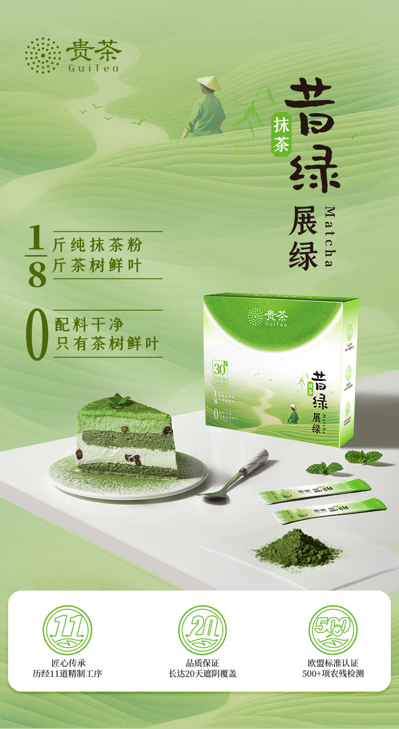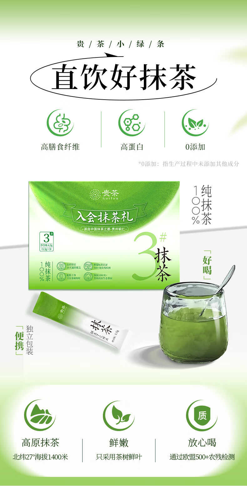 贵茶抹茶粉条装3号4号独立小袋12条30条装贵州高原纯抹茶粉冲饮烘焙 4#欧标抹茶45g*1盒(30条装)