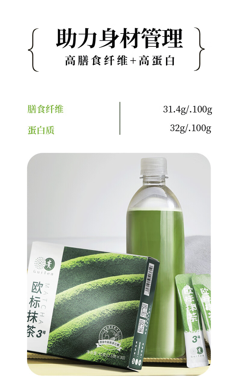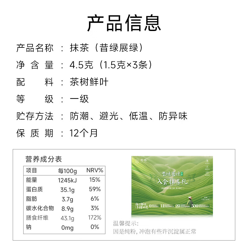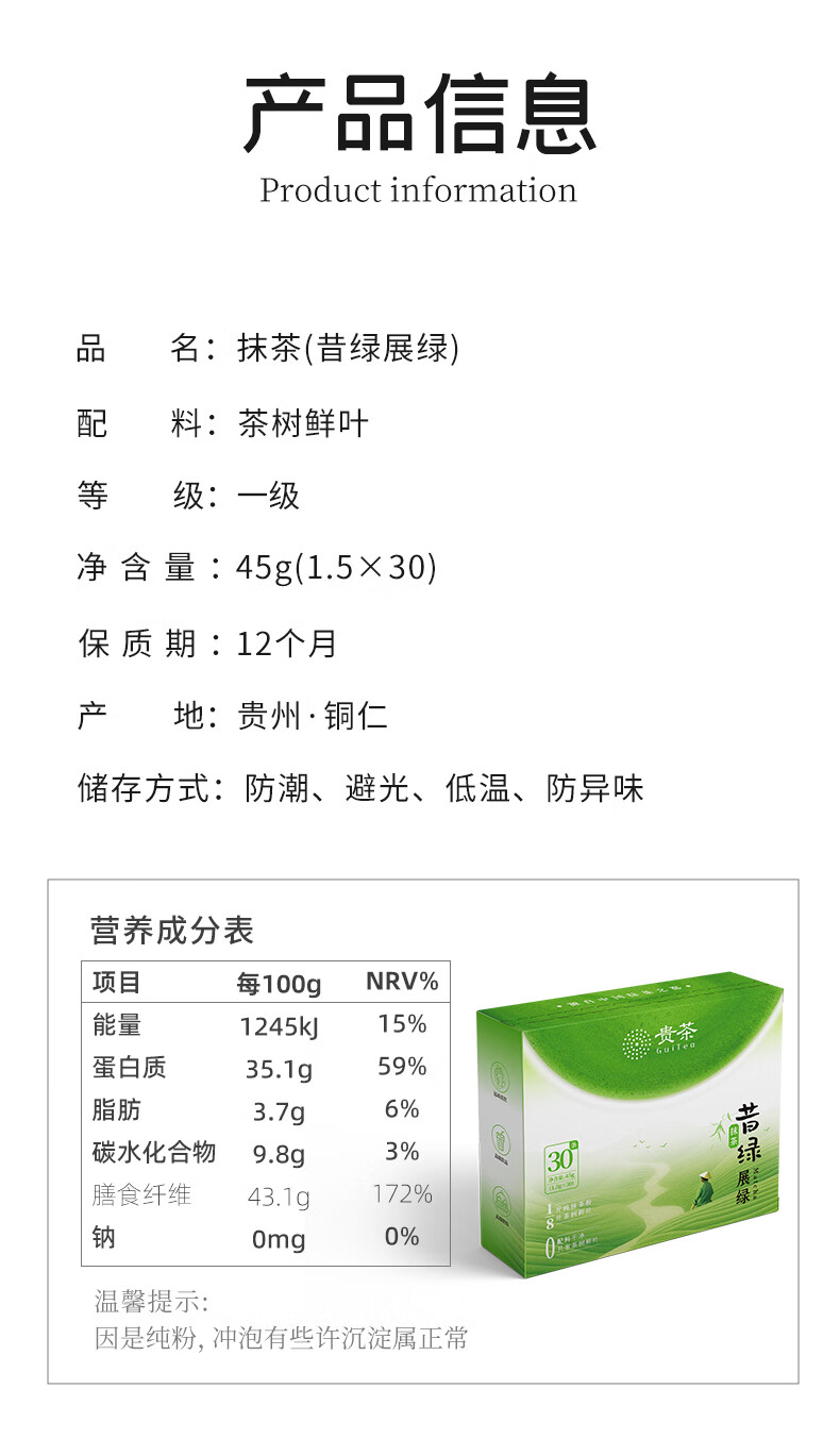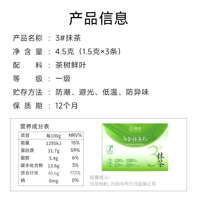 贵茶抹茶粉条装3号4号独立小袋12条30条装贵州高原纯抹茶粉冲饮烘焙 4#欧标抹茶45g*1盒(30条装)