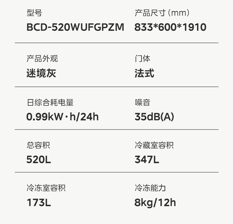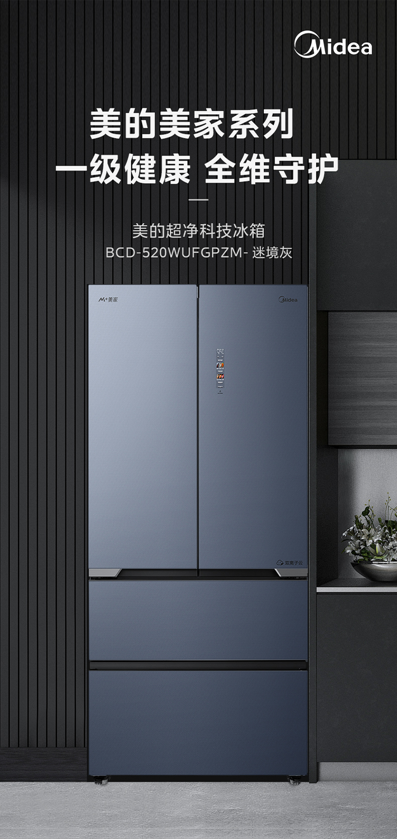 美的 冰箱 BCD-520WUFGPZM 迷境灰