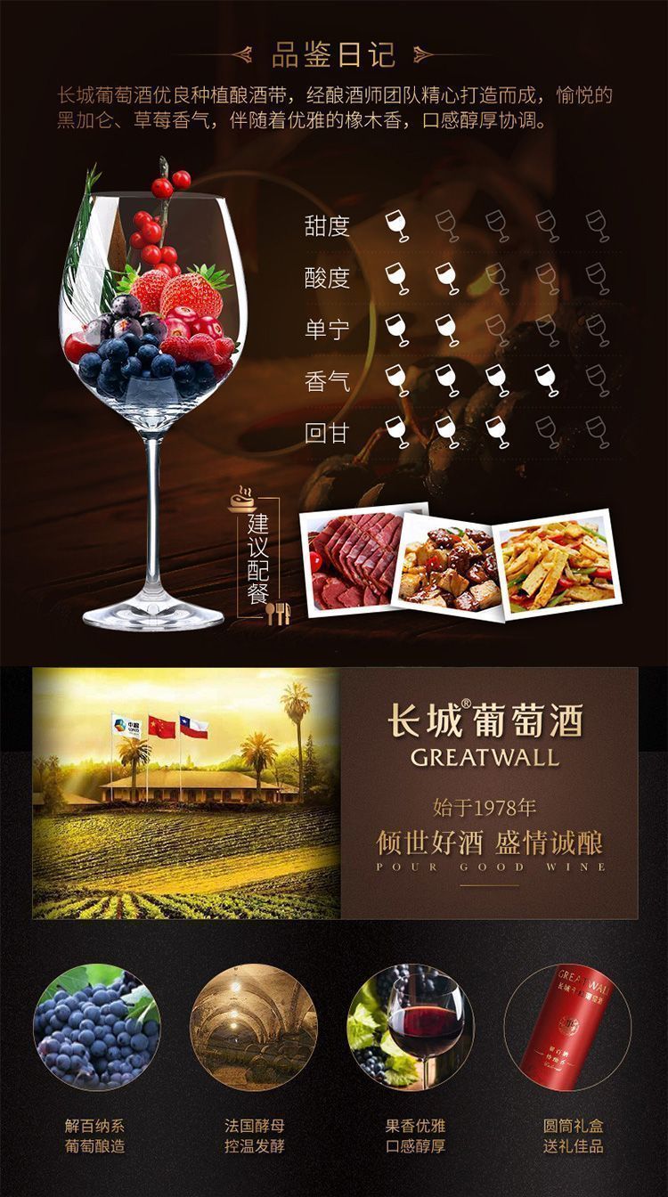 中粮长城干红葡萄酒特酿6 解百纳赤霞珠葡萄酒 整箱750ml*6瓶包邮